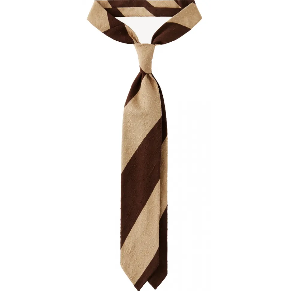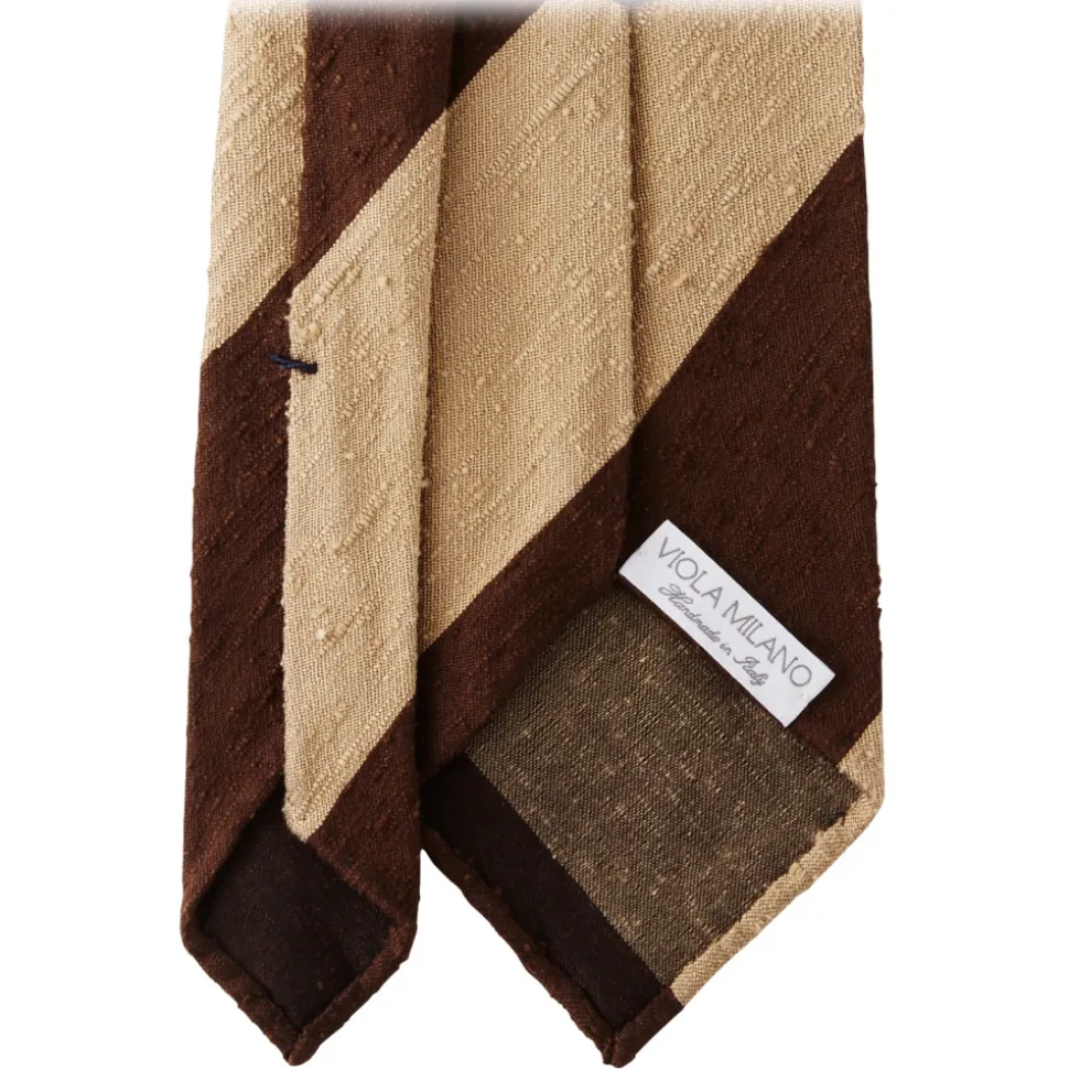 Viola Milano – Block Stripe Handrolled Woven Shantung Tie – Brown/Sand – Handmade in Italy – Luxury Exclusive Collection