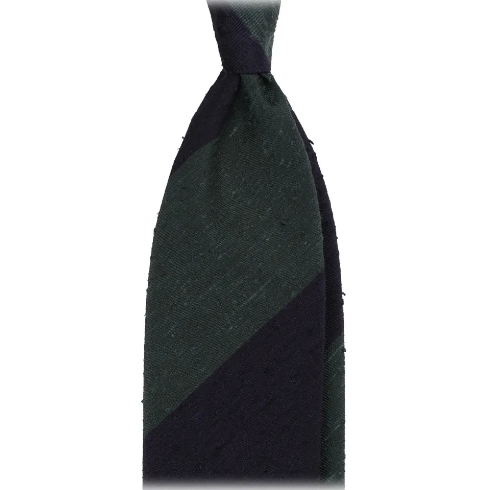 Viola Milano – Block Stripe Handrolled Woven Shantung Tie – Navy/Forest – Handmade in Italy – Luxury Exclusive Collection