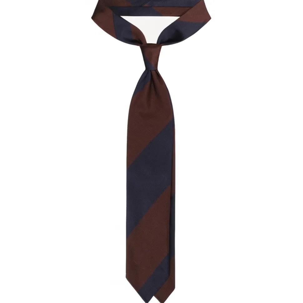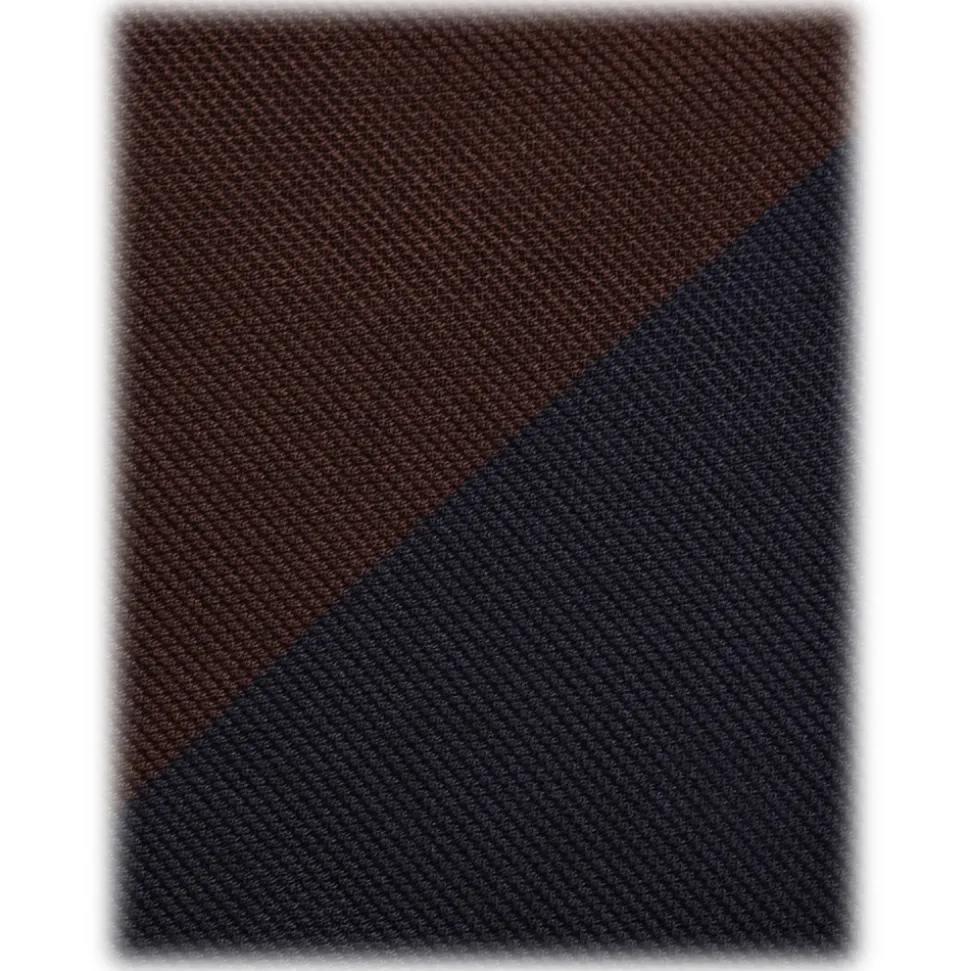 Viola Milano – Block Stripe Handrolled Woven Silk Jacquard Tie – Navy/Brown – Handmade in Italy – Luxury Exclusive Collection