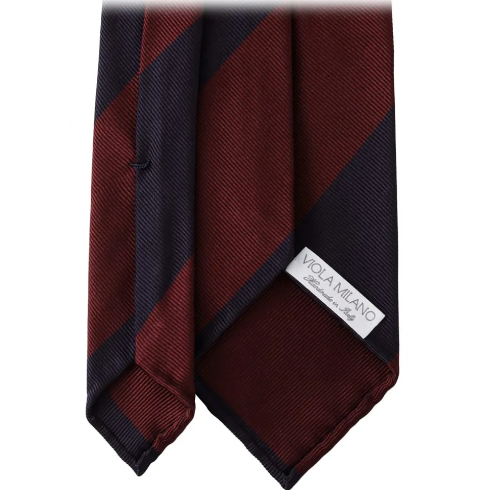Viola Milano – Block Stripe Handrolled Woven Silk Jacquard Tie – Navy/Wine – Handmade in Italy – Luxury Exclusive Collection