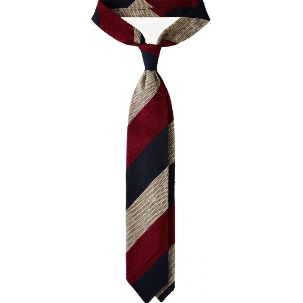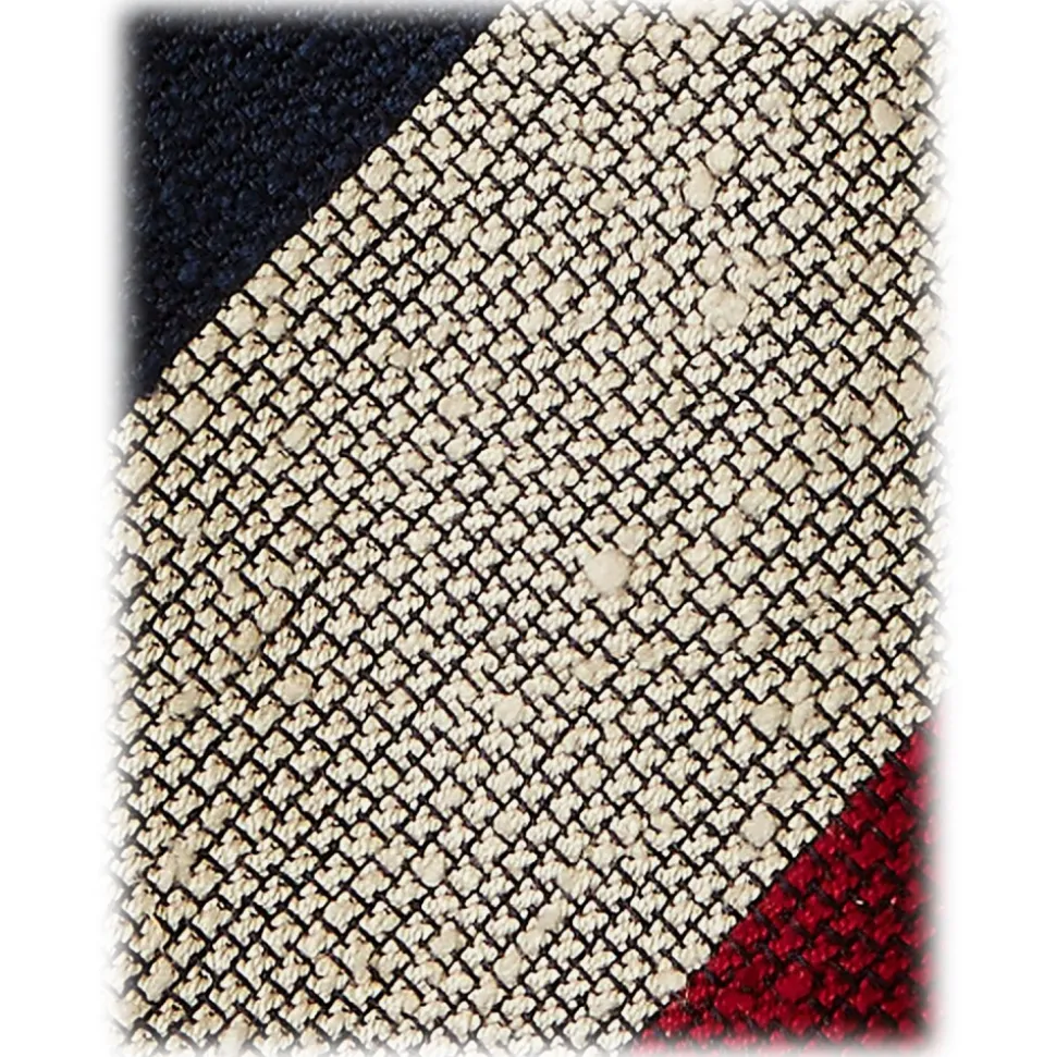Viola Milano – Block Stripe Handrolled Woven Grenadine/Shantung Tie – Natural Mix – Handmade in Italy – Luxury Exclusive Collection