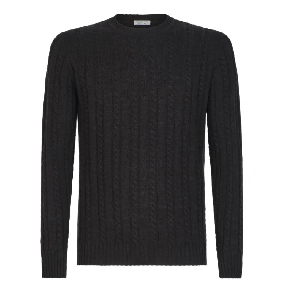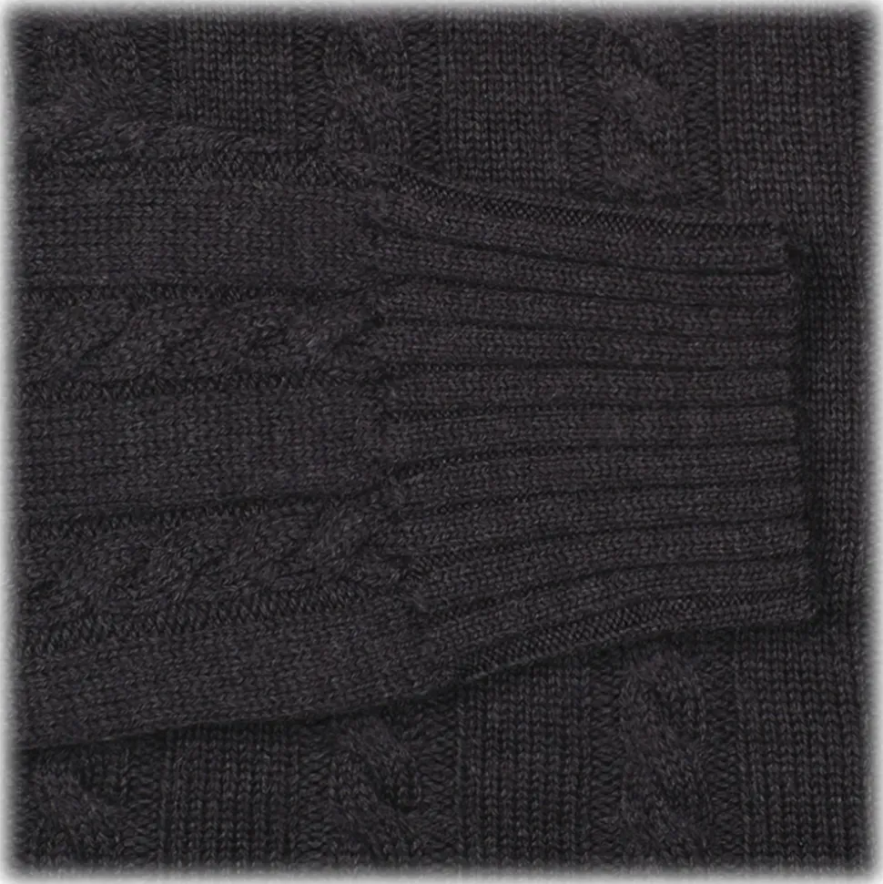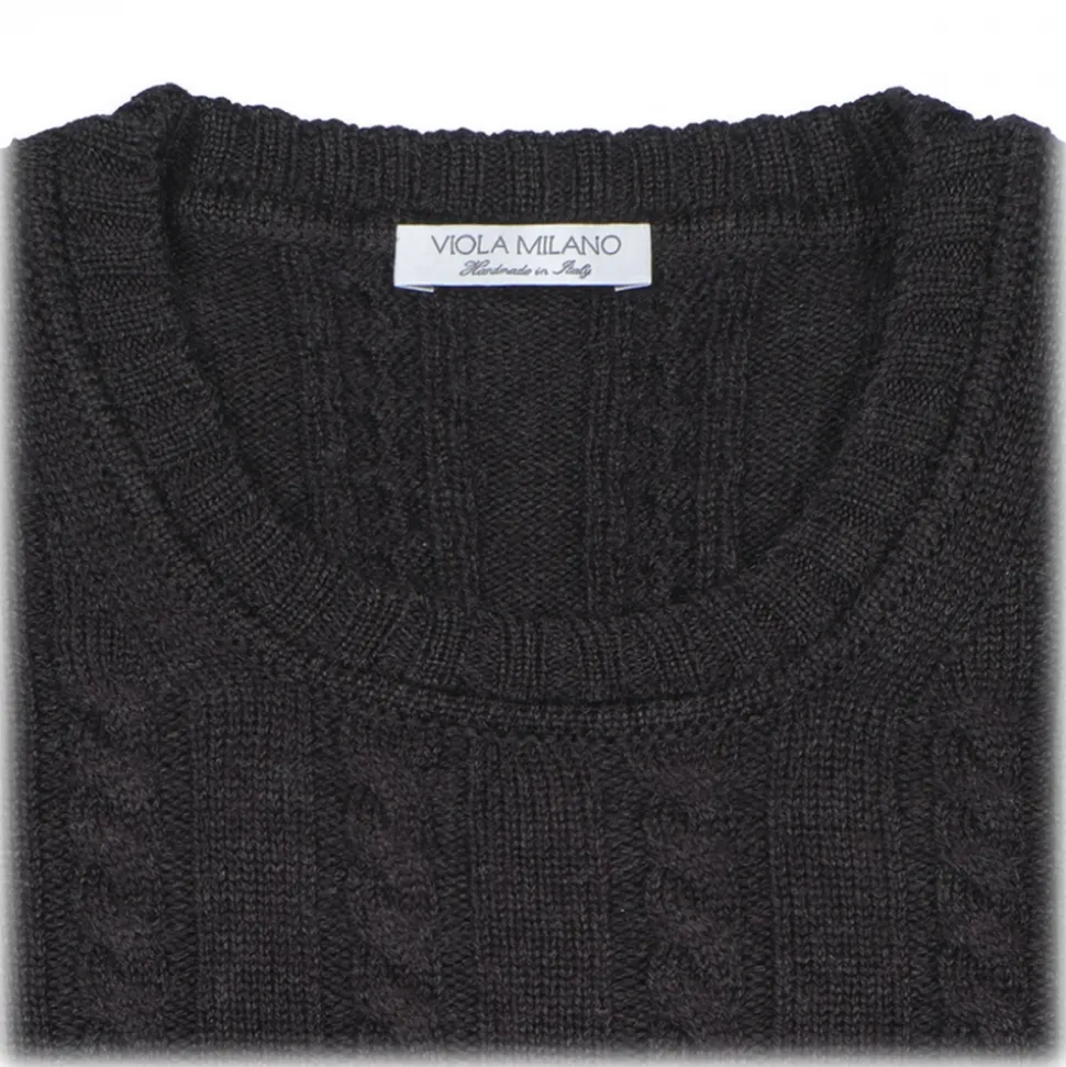 Viola Milano – Cable Knit Lambswool Sweater – Dark Grey – Handmade in Italy – Luxury Exclusive Collection