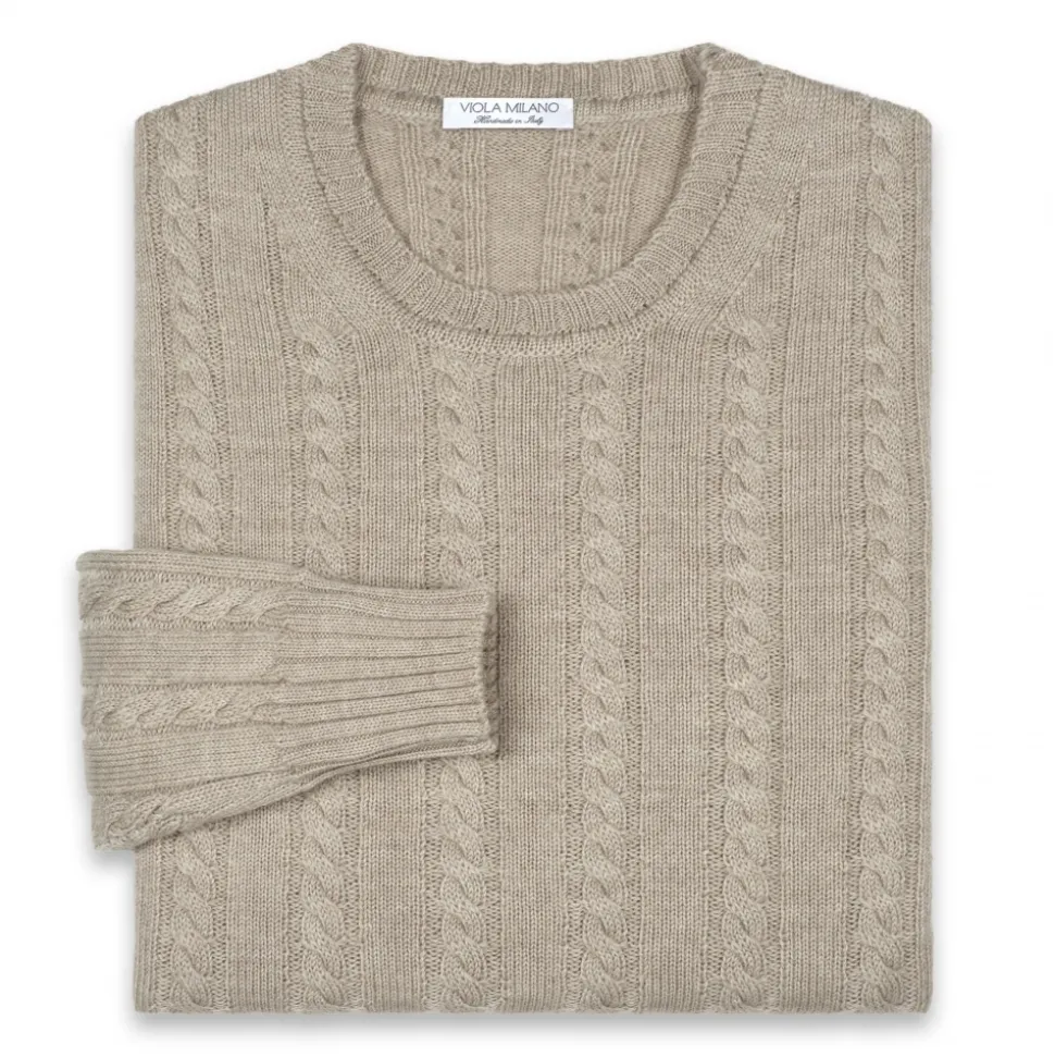 Viola Milano – Cable Knit Loro Piana Cashmere Sweater – Beige – Handmade in Italy – Luxury Exclusive Collection