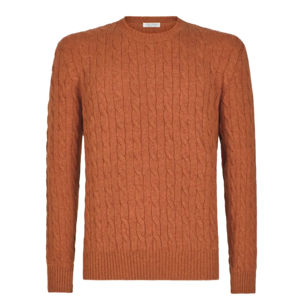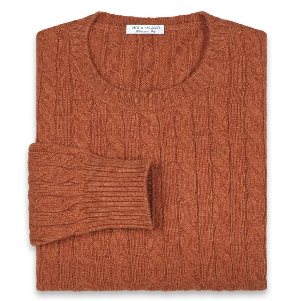 Viola Milano – Cable Knit Loro Piana Cashmere Sweater – Orange – Handmade in Italy – Luxury Exclusive Collection