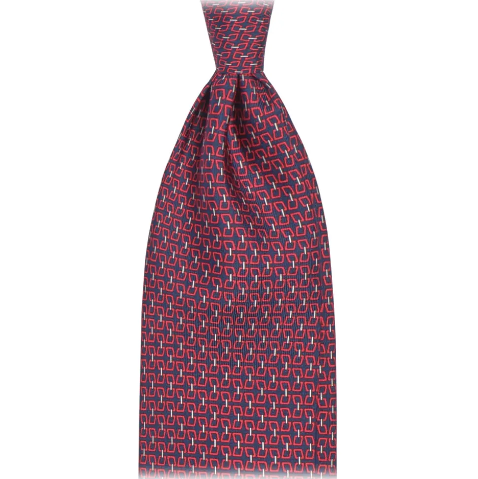 Viola Milano – Chain Lock Selftipped Italian Silk Tie – Navy/Wine – Handmade in Italy – Luxury Exclusive Collection