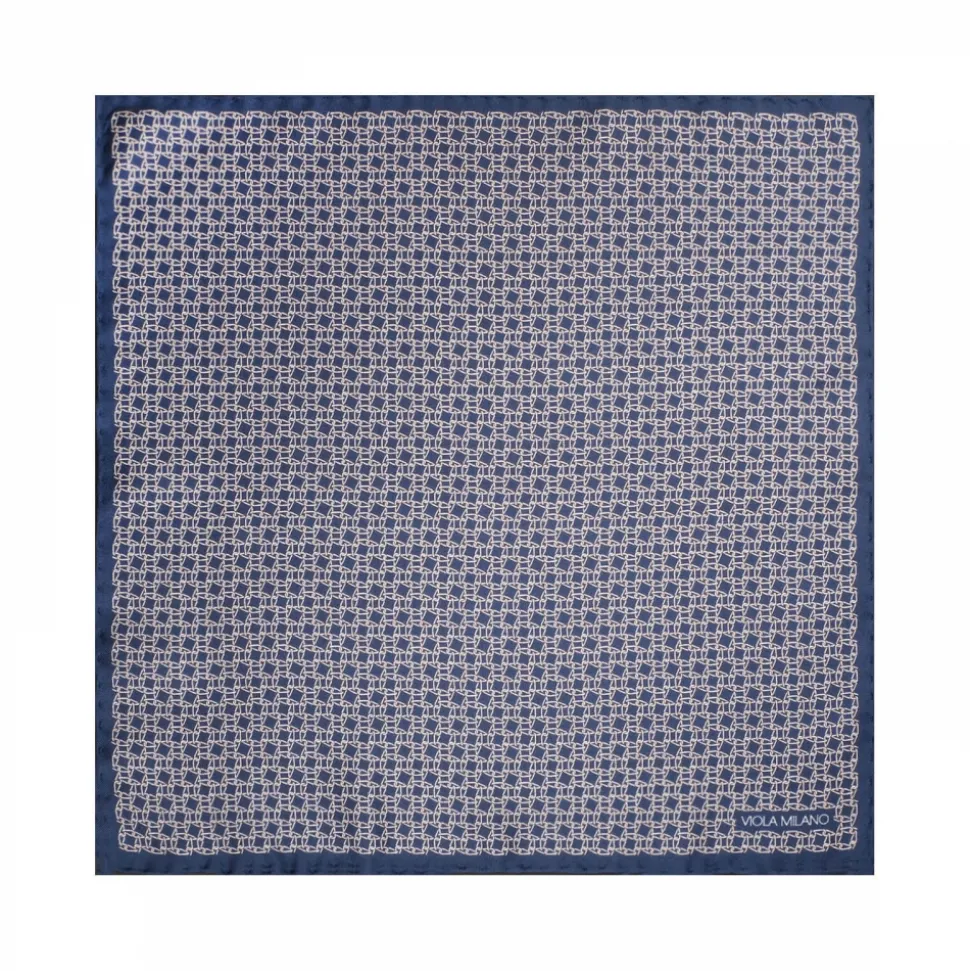 Viola Milano – Chain Pattern Silk Pocket Square – Navy – Handmade in Italy – Luxury Exclusive Collection