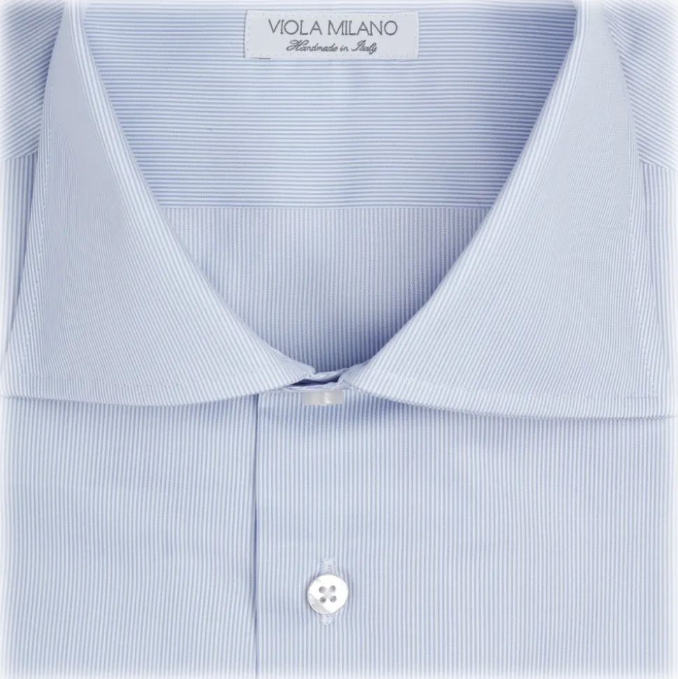 Viola Milano – Classic Micro Stripe Napoli Collar Dress Shirt – Blue/White – Handmade in Italy – Luxury Exclusive Collection