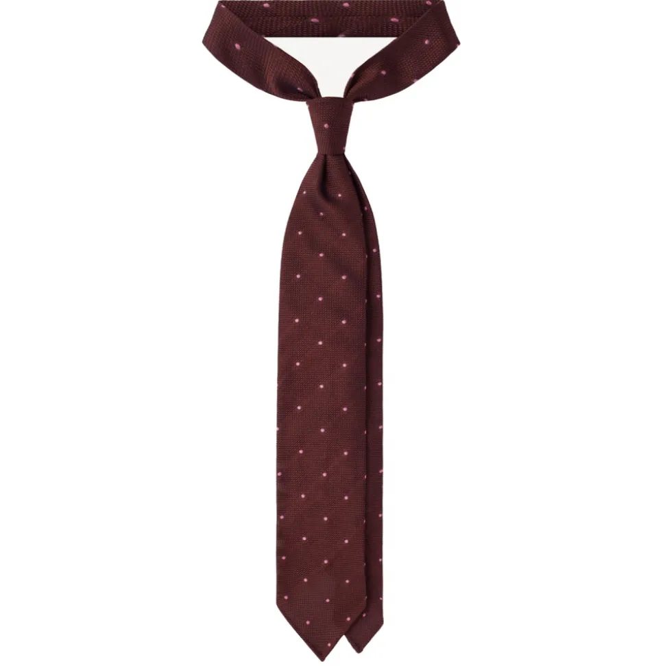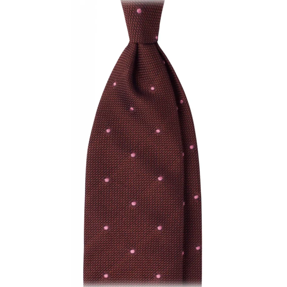 Viola Milano – Classic Polka Dot 3-Fold Grenadine Tie – Burgundy/Pink – Handmade in Italy – Luxury Exclusive Collection