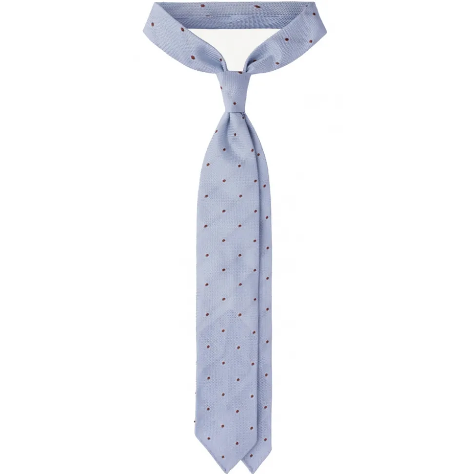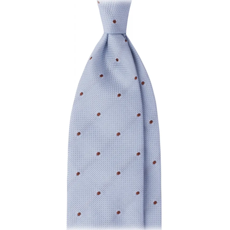 Viola Milano – Classic Polka Dot 3-Fold Grenadine Tie – Light Blue/Brown – Handmade in Italy – Luxury Exclusive Collection