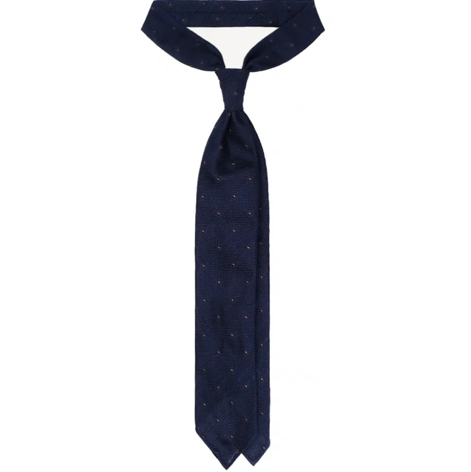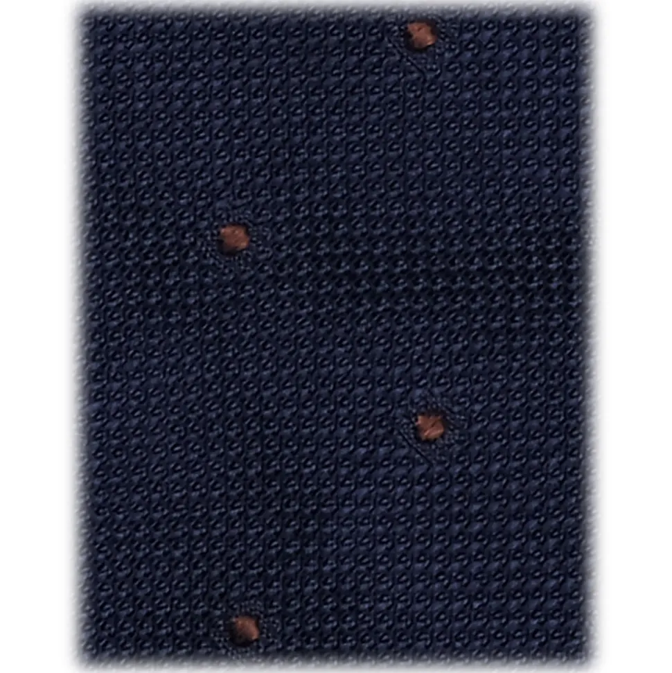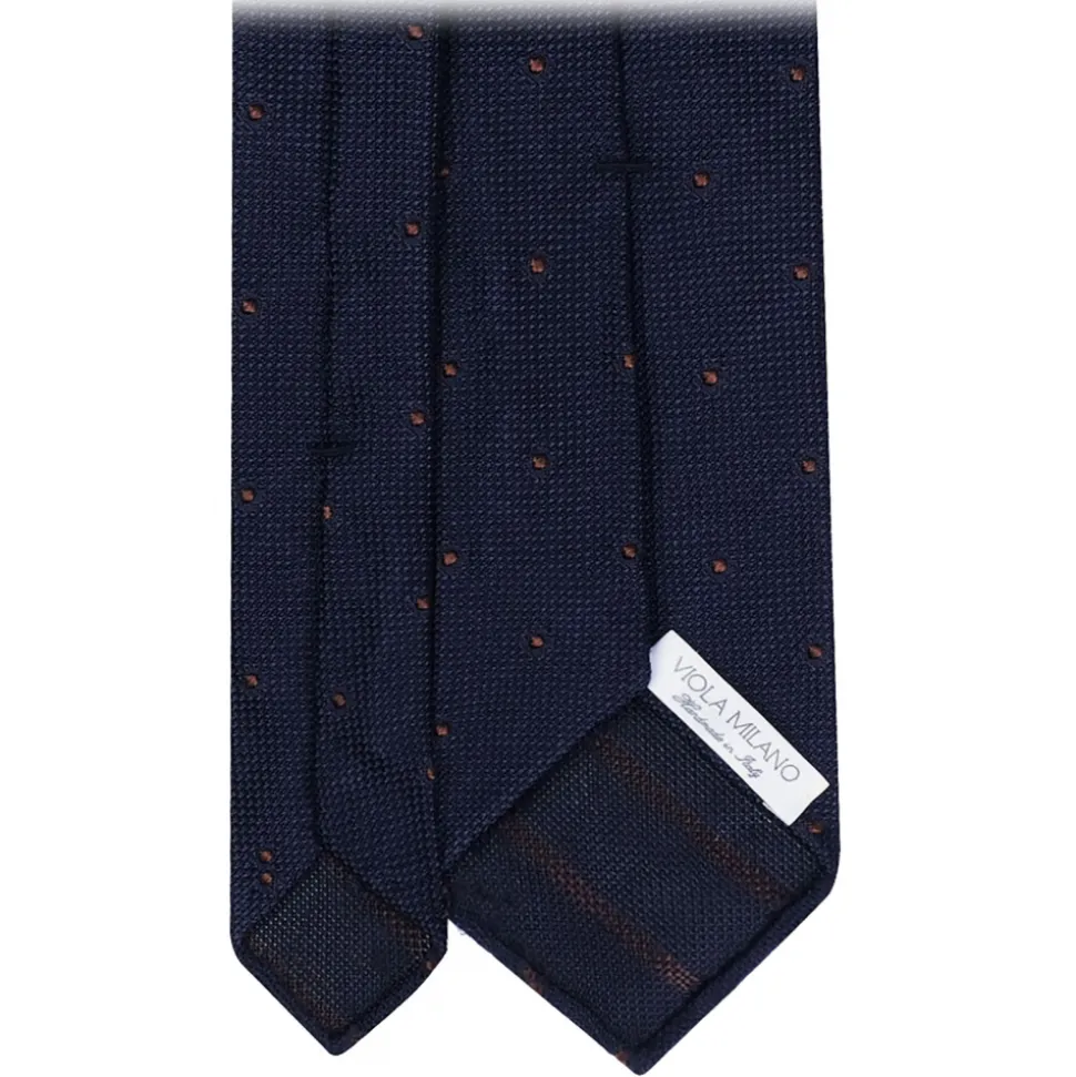 Viola Milano – Classic Polka Dot 3-Fold Grenadine Tie – Navy/Brown – Handmade in Italy – Luxury Exclusive Collection