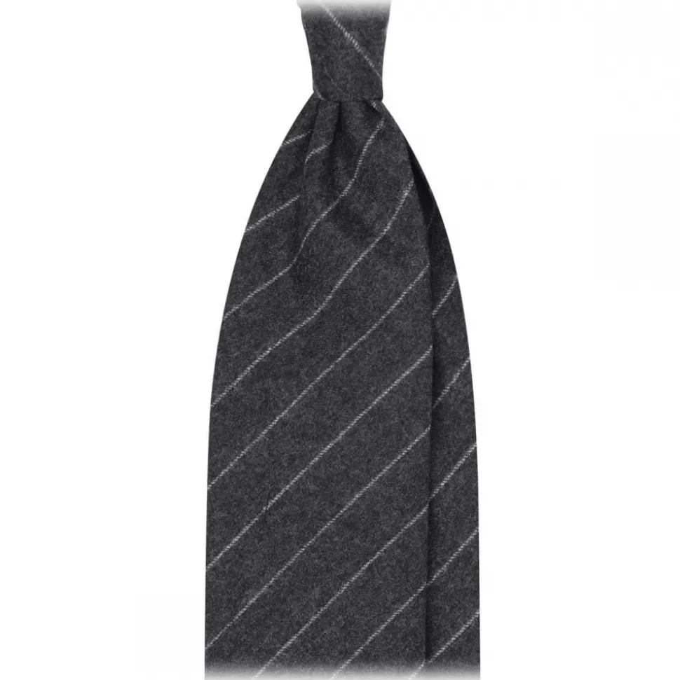 Viola Milano – Classic Shalk Stripe Untipped Flannel Tie – Dark Grey – Made in Italy – Luxury Exclusive Collection