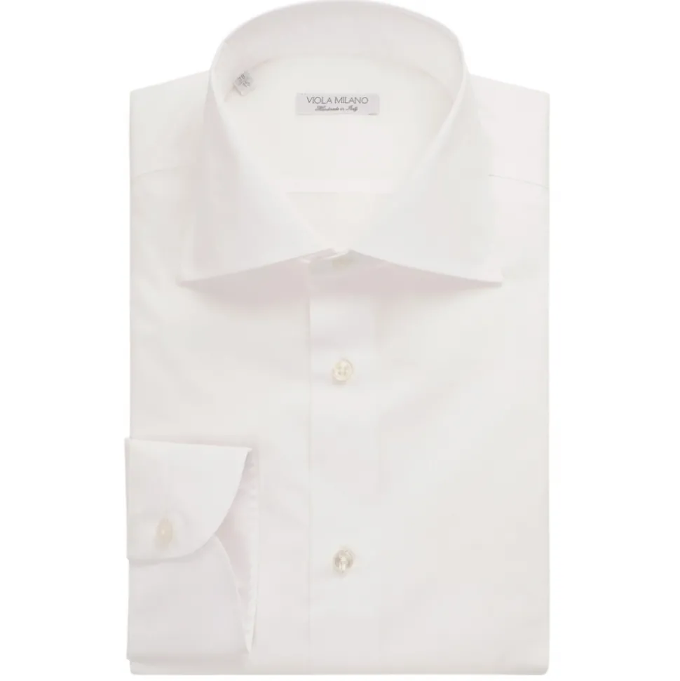 Viola Milano – Classic Solid Cut-Away Collar Dress Shirt – White – Handmade in Italy – Luxury Exclusive Collection