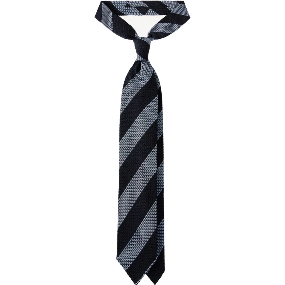 Viola Milano – Classic Stripe 3-Fold Grenadine Tie – Navy/Sea – Handmade in Italy – Luxury Exclusive Collection