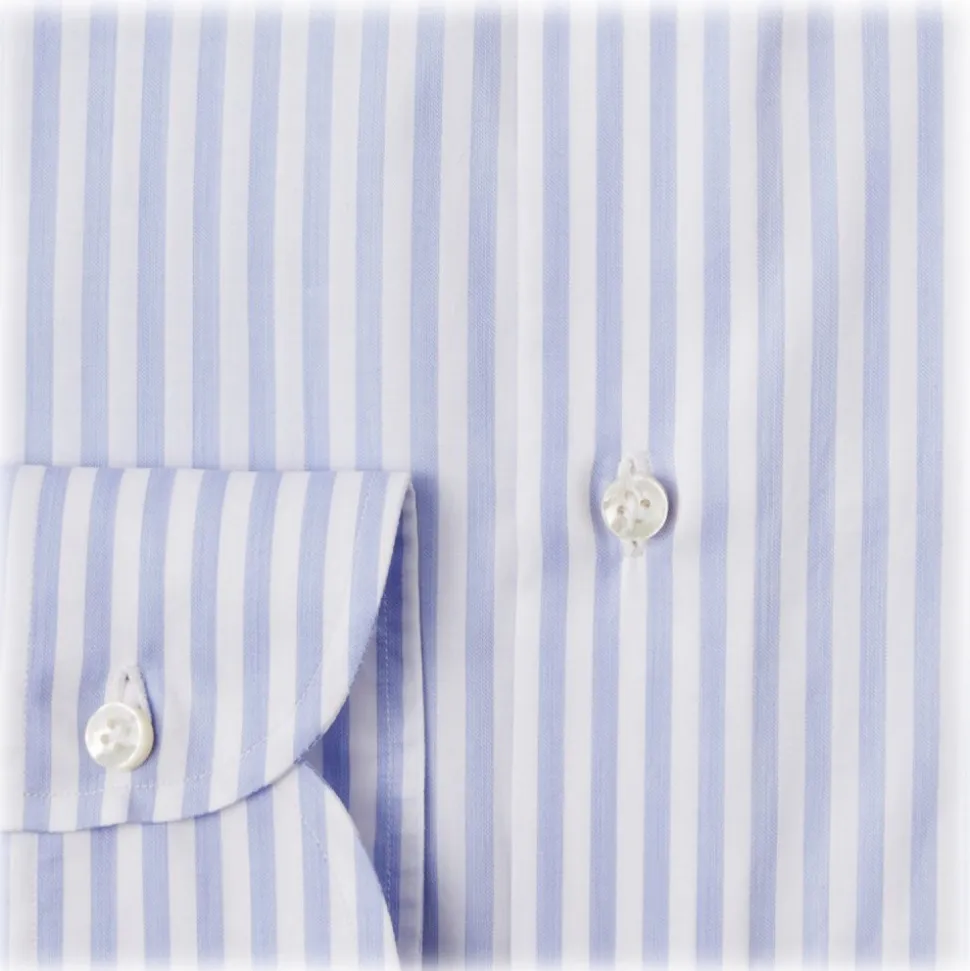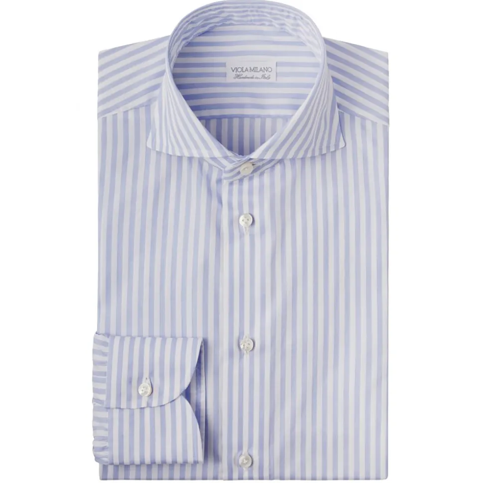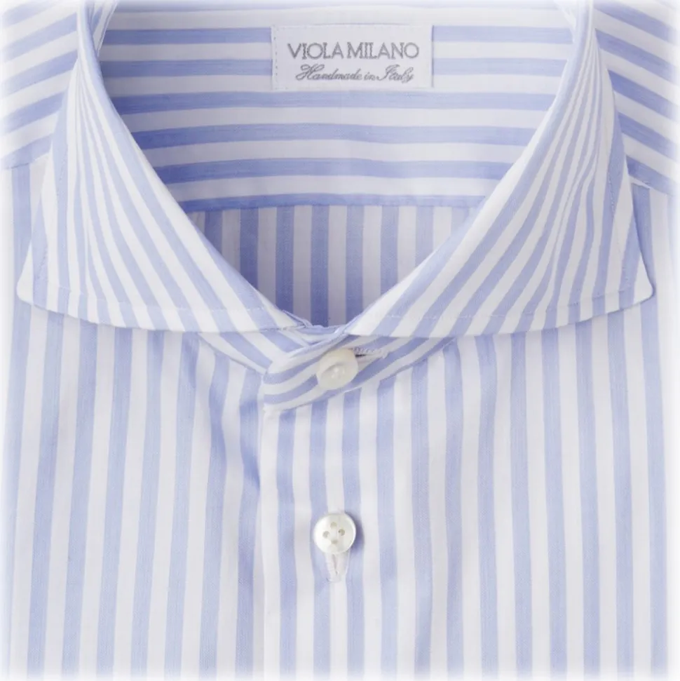 Viola Milano – Classic Stripe Cut-Away Collar Dress Shirt – Blue/White – Handmade in Italy – Luxury Exclusive Collection