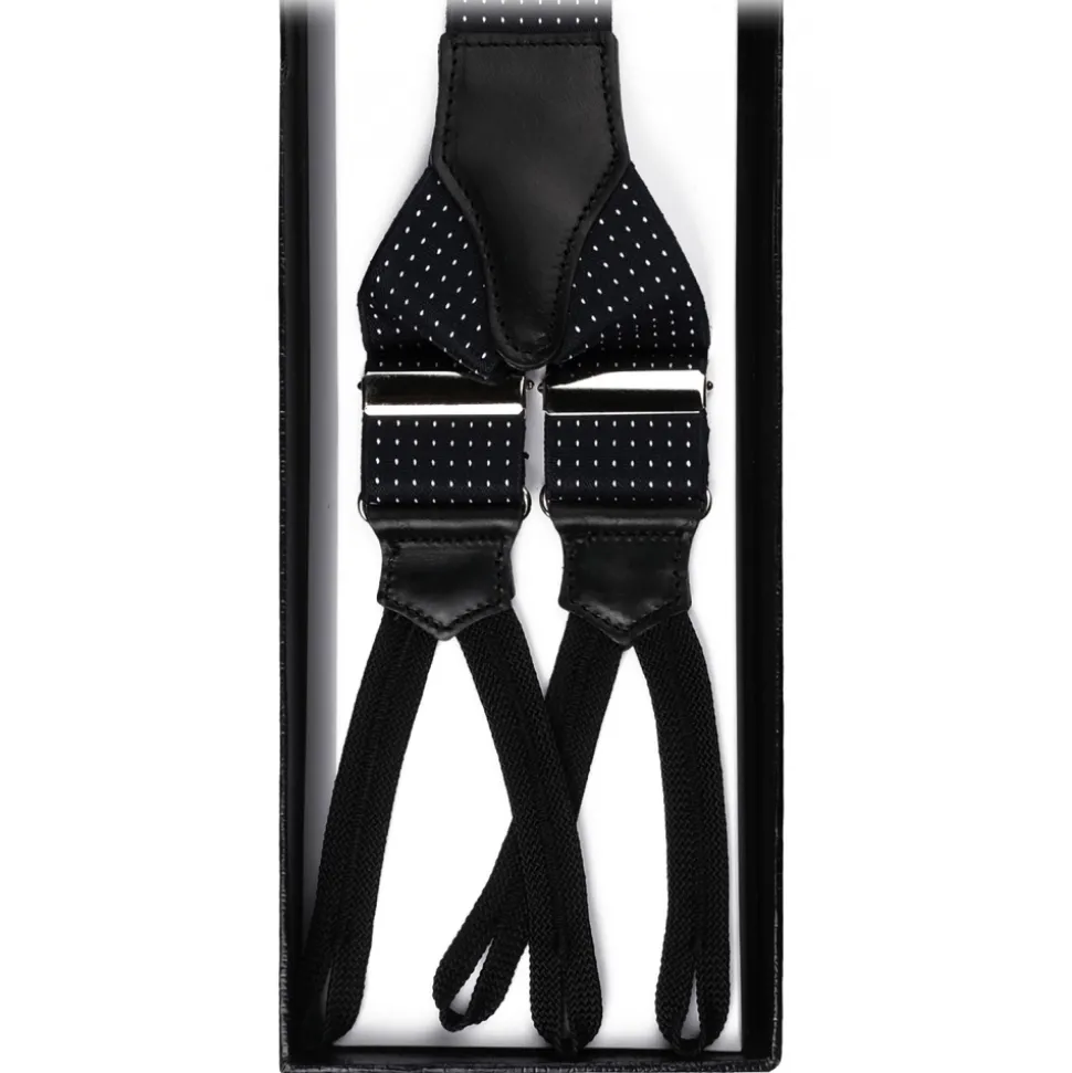 Viola Milano – Classic Width Braces L Braid Ends – Polka Dot Black – Handmade in Italy – Luxury Exclusive Collection