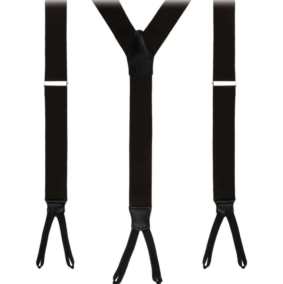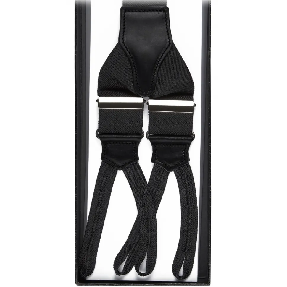 Viola Milano – Classic Width Braces L Braid Ends – Solid Black – Handmade in Italy – Luxury Exclusive Collection
