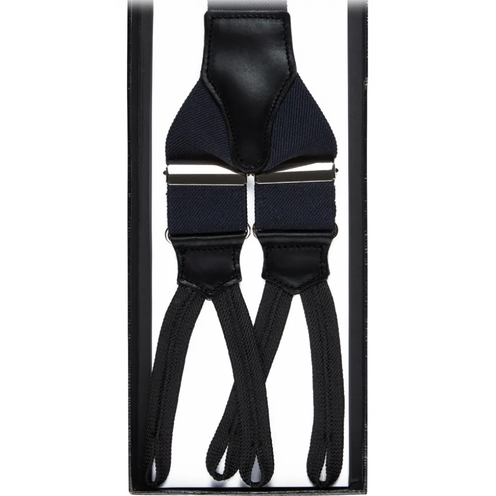 Viola Milano – Classic Width Braces L Braid Ends – Solid Navy – Handmade in Italy – Luxury Exclusive Collection