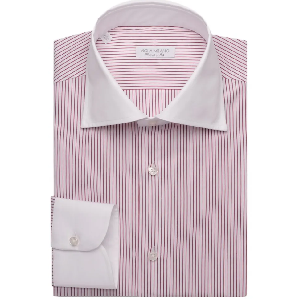 Viola Milano – Contrast Collar Cut-Away Collar Shirt – Red/White Striped – Handmade in Italy – Luxury Exclusive Collection