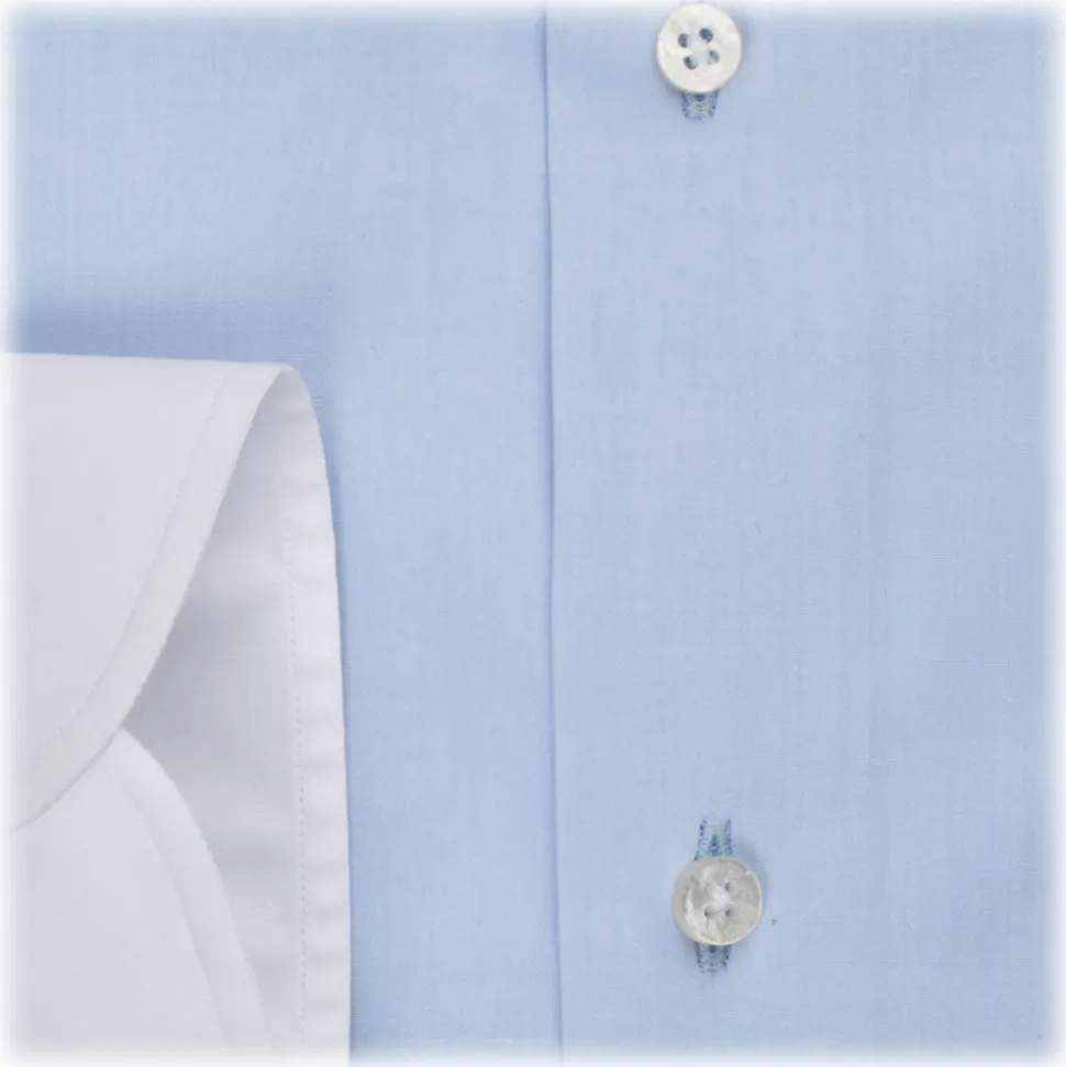 Viola Milano – Contrast Collar Shirt – Light Blue – Handmade in Italy – Luxury Exclusive Collection