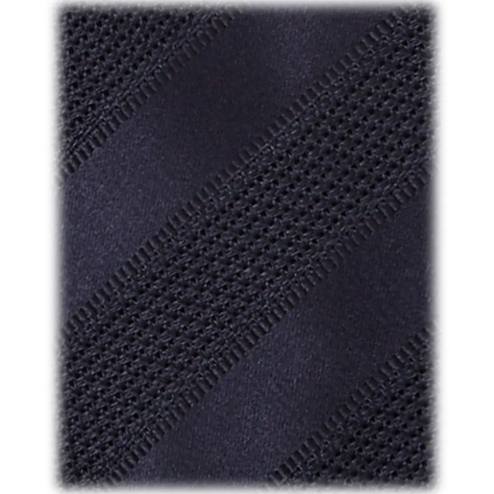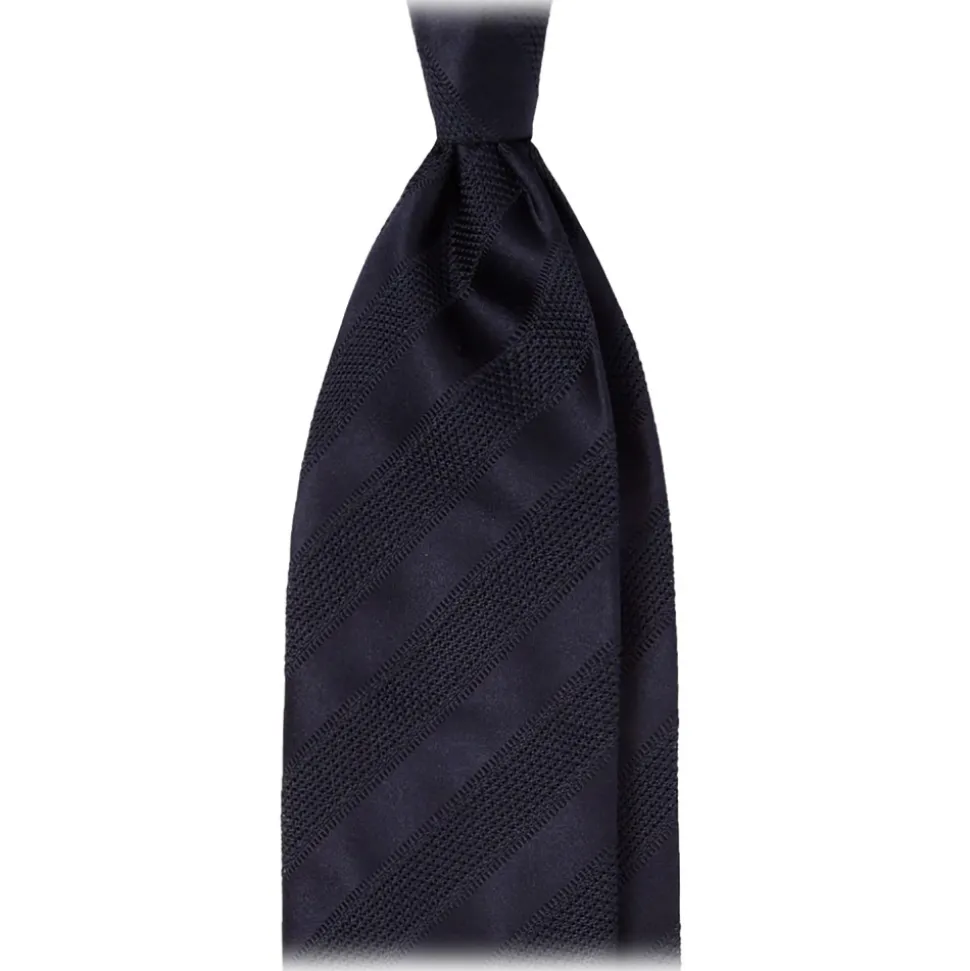 Viola Milano – Contrast Stripe 3-fold Grenadine Tie – Navy – Handmade in Italy – Luxury Exclusive Collection