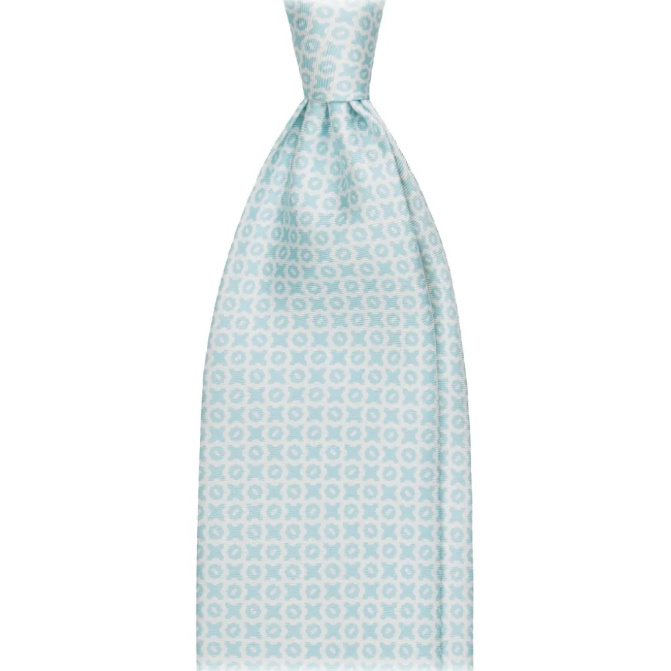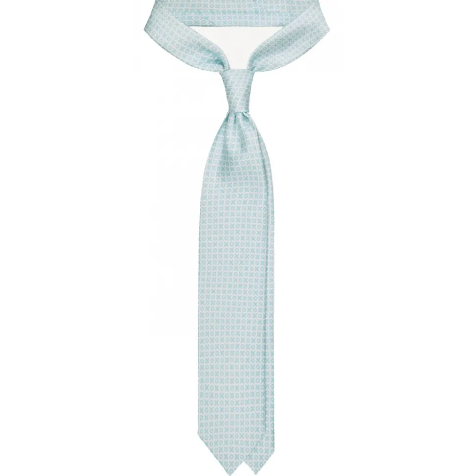 Viola Milano – Cross Pattern Handprinted Selftipped Silk Tie – Menthol/White – Handmade in Italy – Luxury Exclusive Collection
