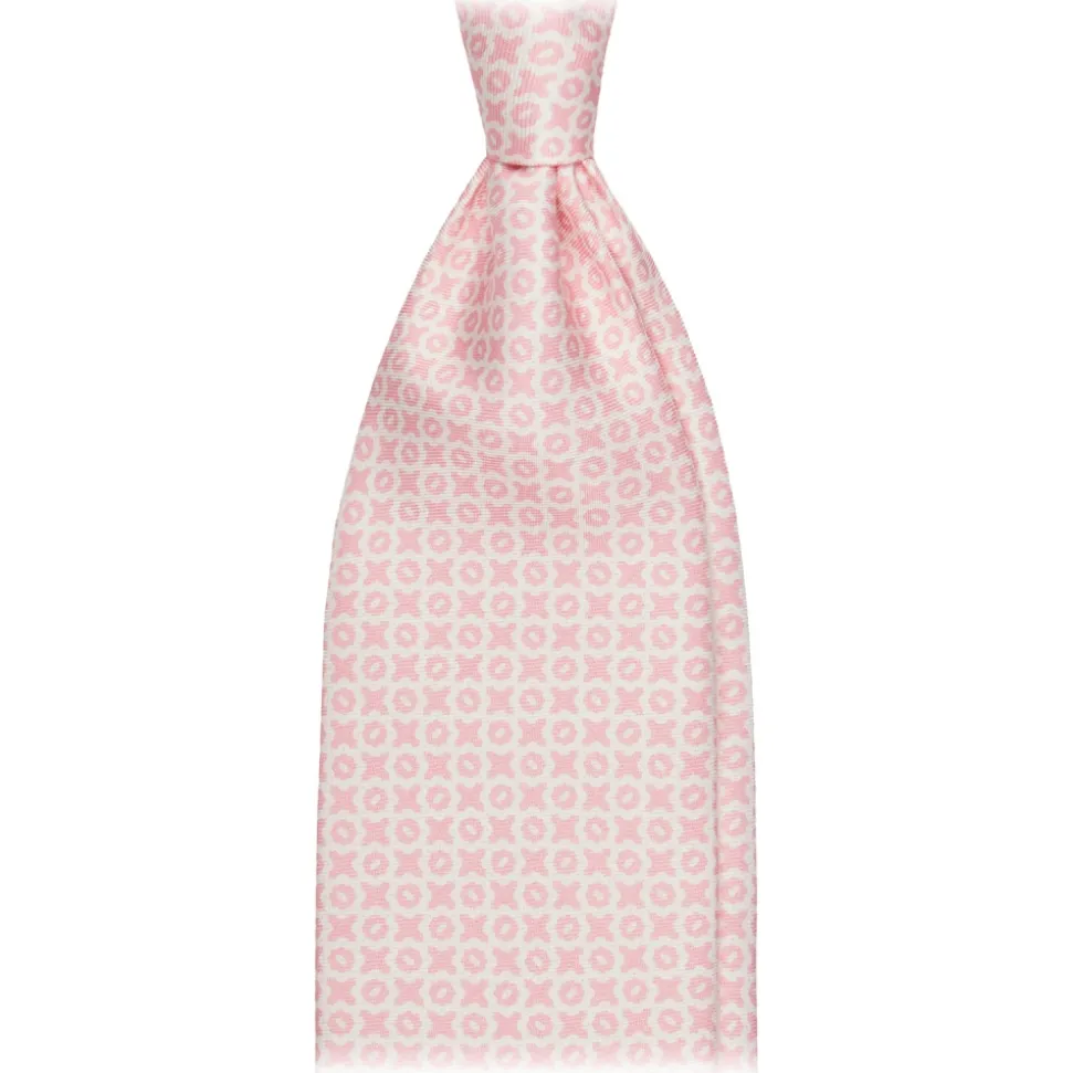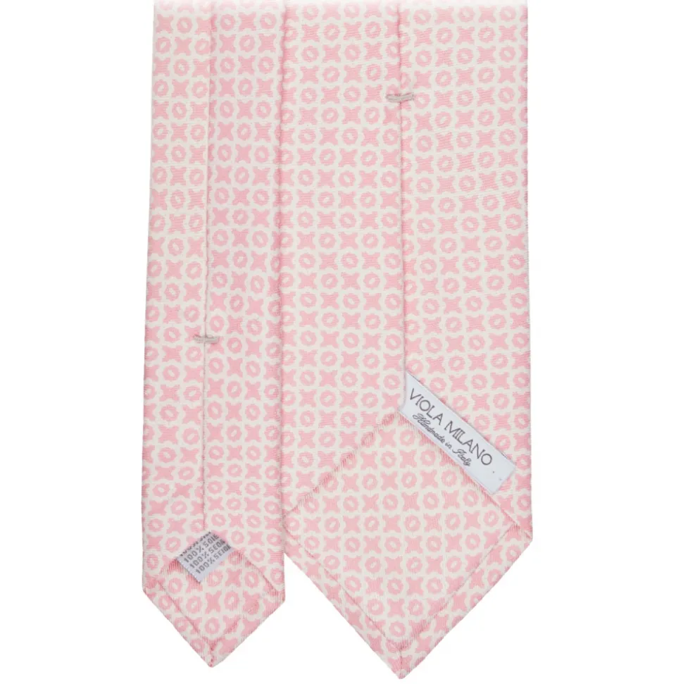 Viola Milano – Cross Pattern Handprinted Selftipped Silk Tie – Pink/White – Handmade in Italy – Luxury Exclusive Collection