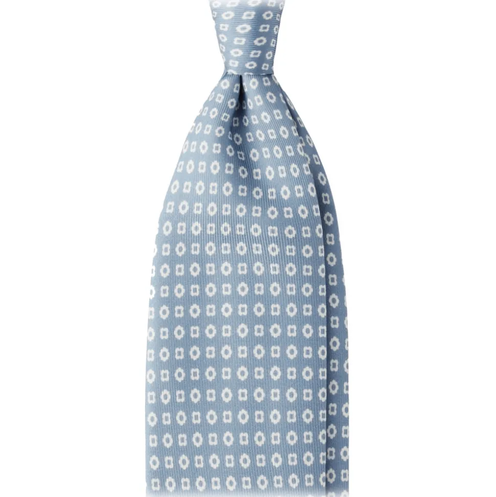 Viola Milano – Cube Pattern Selftipped Silk Tie – Ice Blue – Handmade in Italy – Luxury Exclusive Collection