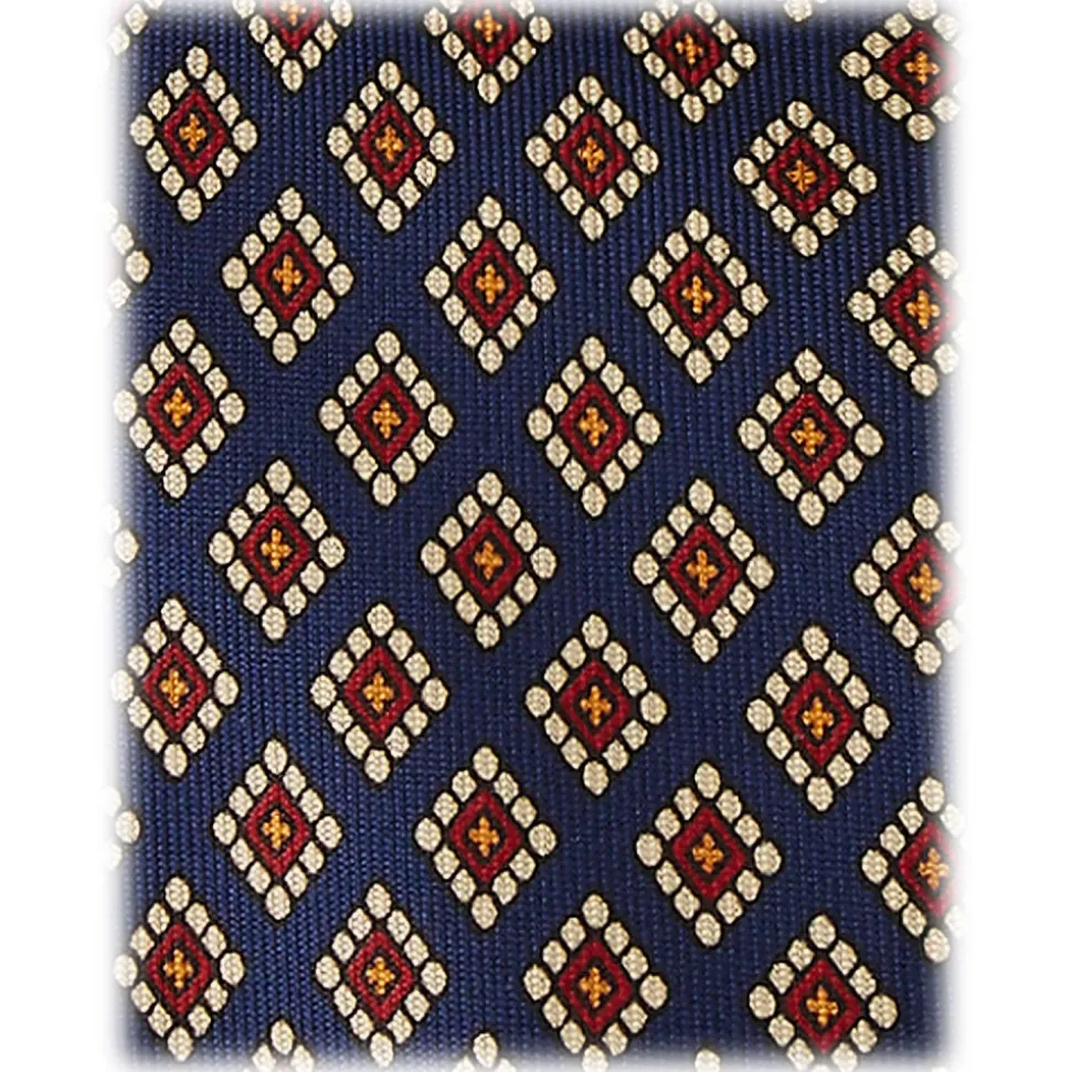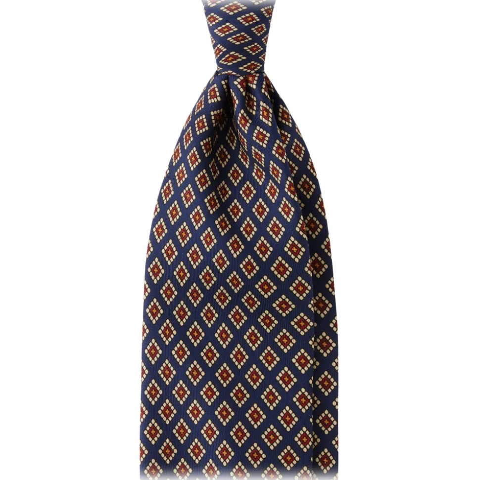 Viola Milano – Diamond Pattern 3-Fold Handprinted Selftipped Silk Tie – Navy – Handmade in Italy – Luxury Exclusive Collection