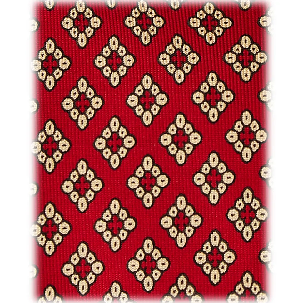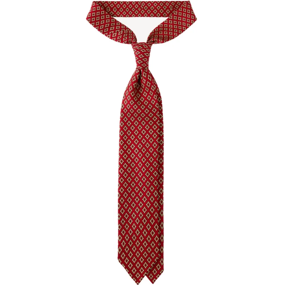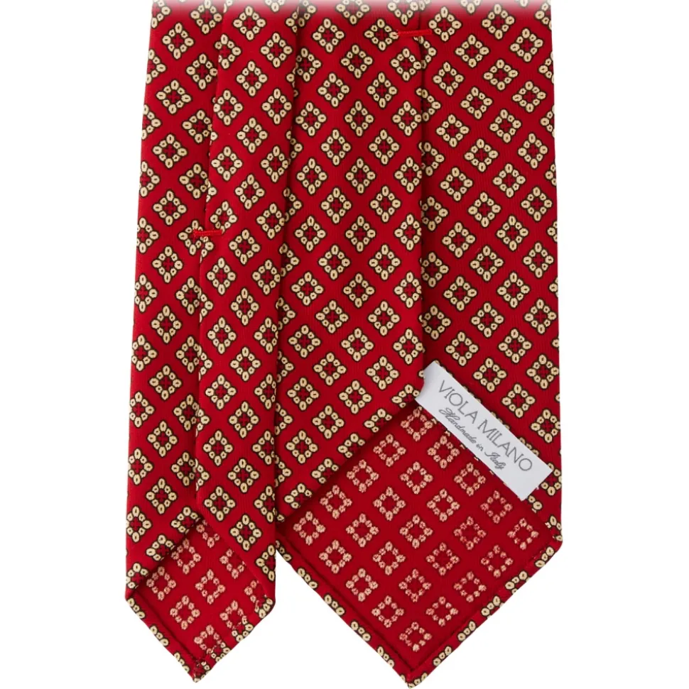 Viola Milano – Diamond Pattern 3-Fold Handprinted Selftipped Silk Tie – Red Mix – Handmade in Italy – Luxury Exclusive Collection