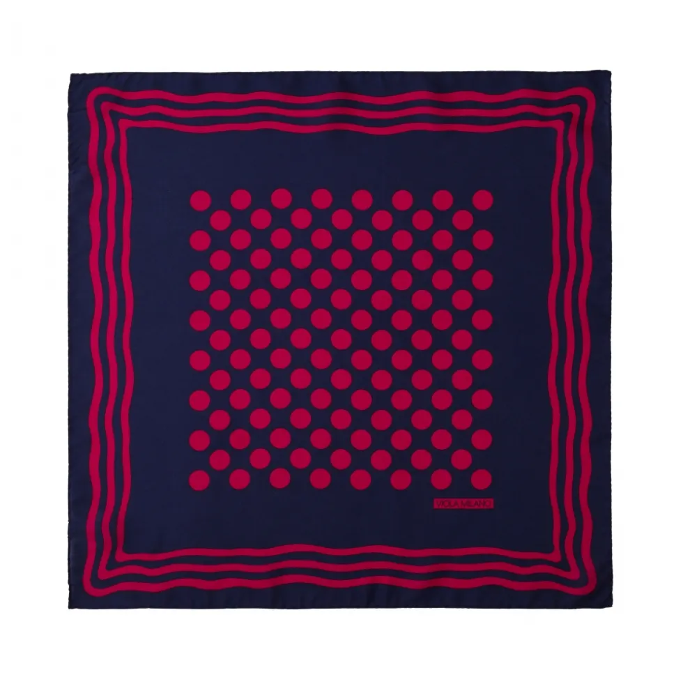 Viola Milano – Dot Wave Silk Pocket Square – Navy and Wine – Handmade in Italy – Luxury Exclusive Collection