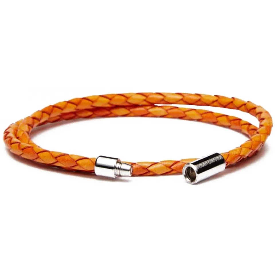 Viola Milano – Double Braided Italian Leather Bracelet – Orange Mix – Handmade in Italy – Luxury Exclusive Collection