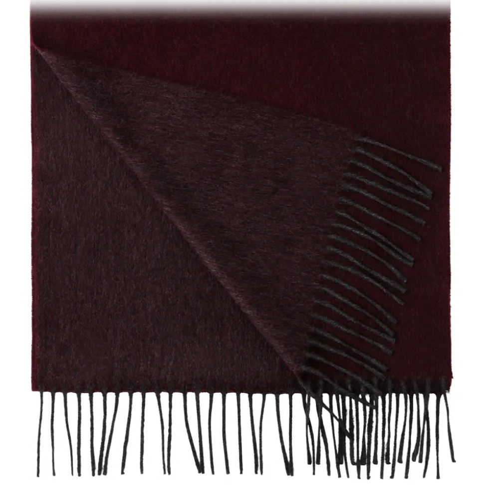 Viola Milano – Double Face 100% Zibellino Cashmere Scarf – Burgundy/Grey – Handmade in Italy – Luxury Exclusive Collection