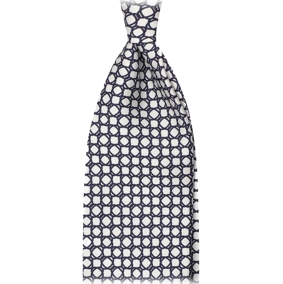 Viola Milano – Floral Chain Selftipped Italian Silk Tie – White – Handmade in Italy – Luxury Exclusive Collection