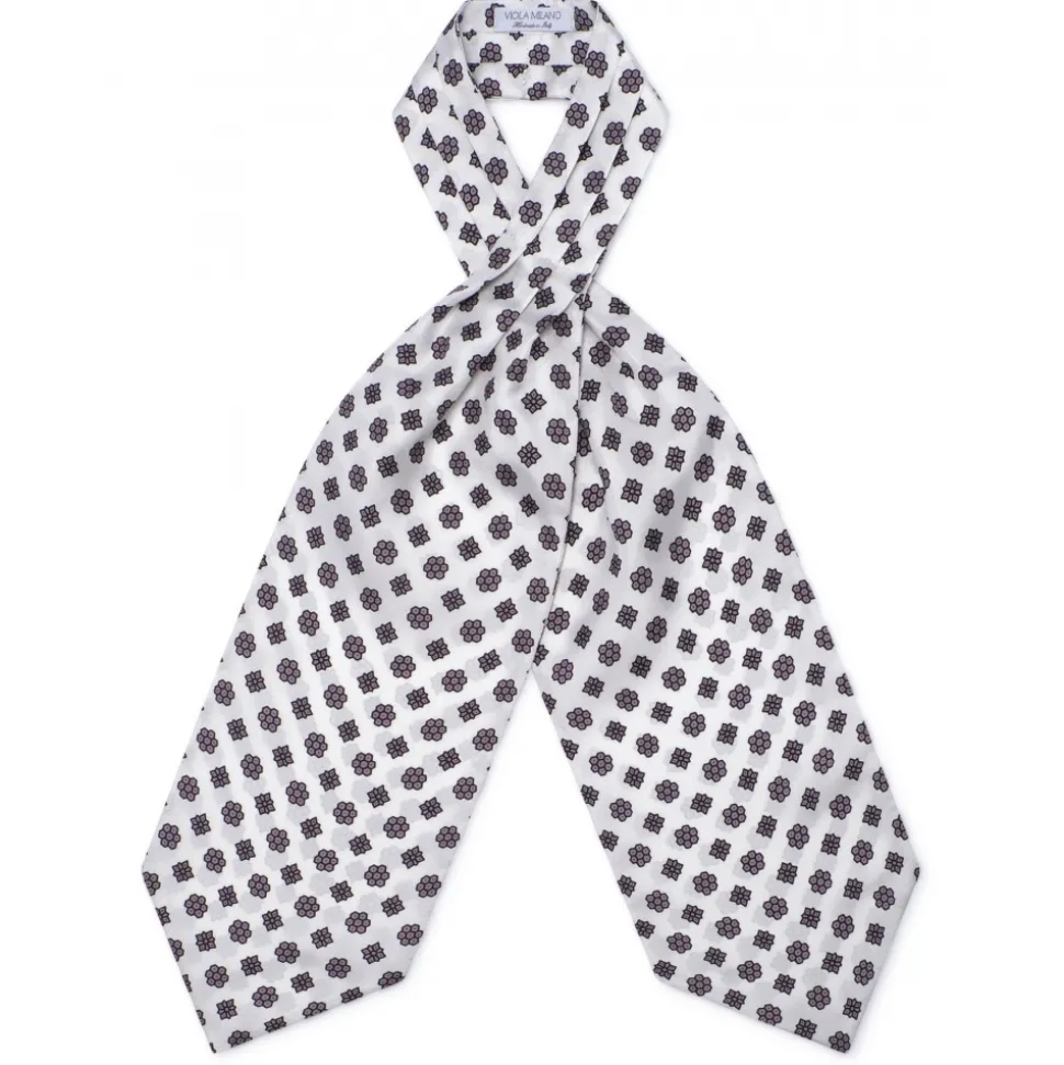 Viola Milano – Floral Italian Silk Ascot Tie – White – Handmade in Italy – Luxury Exclusive Collection