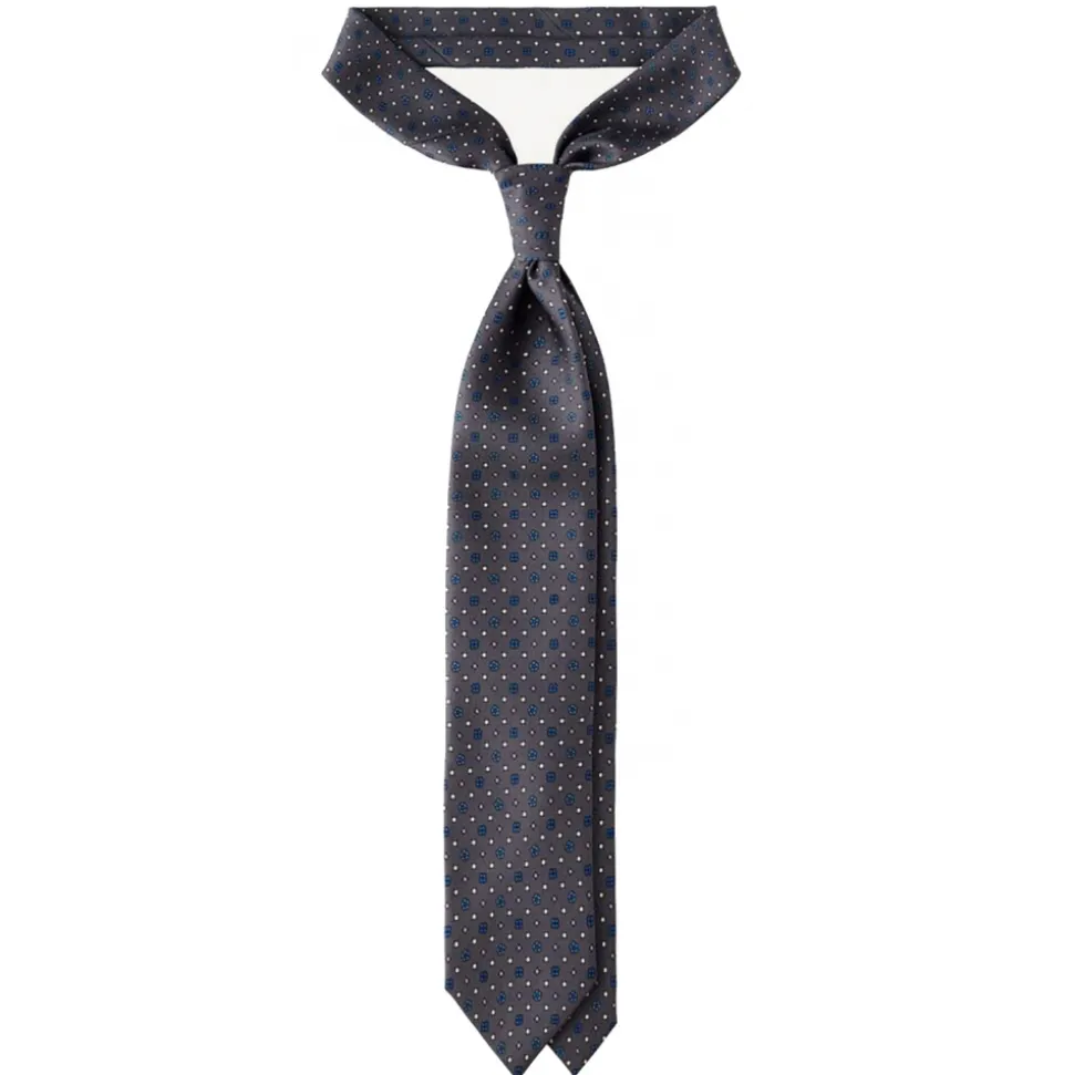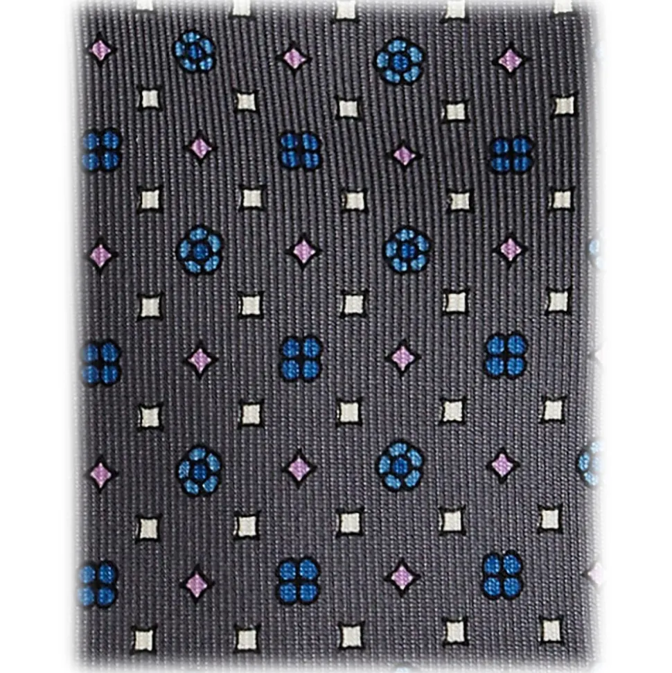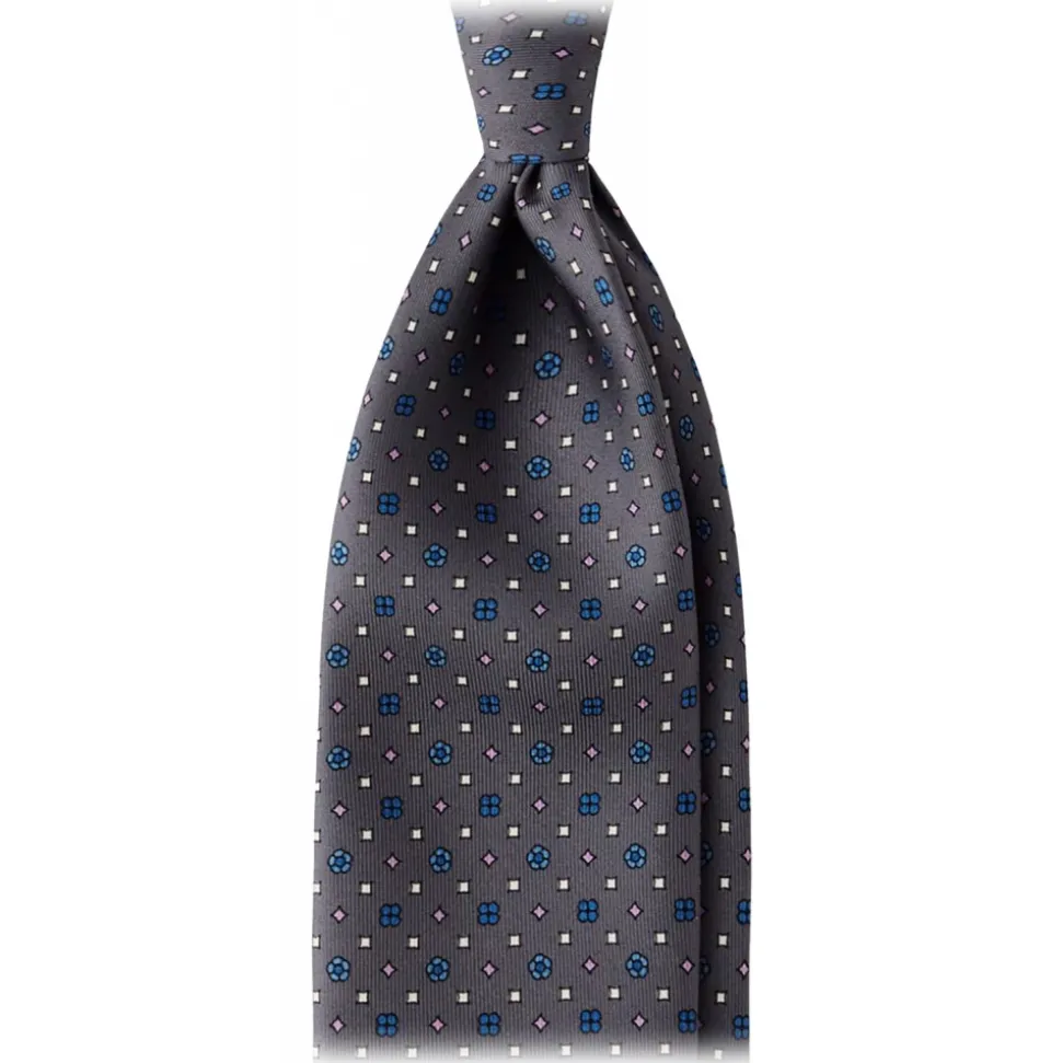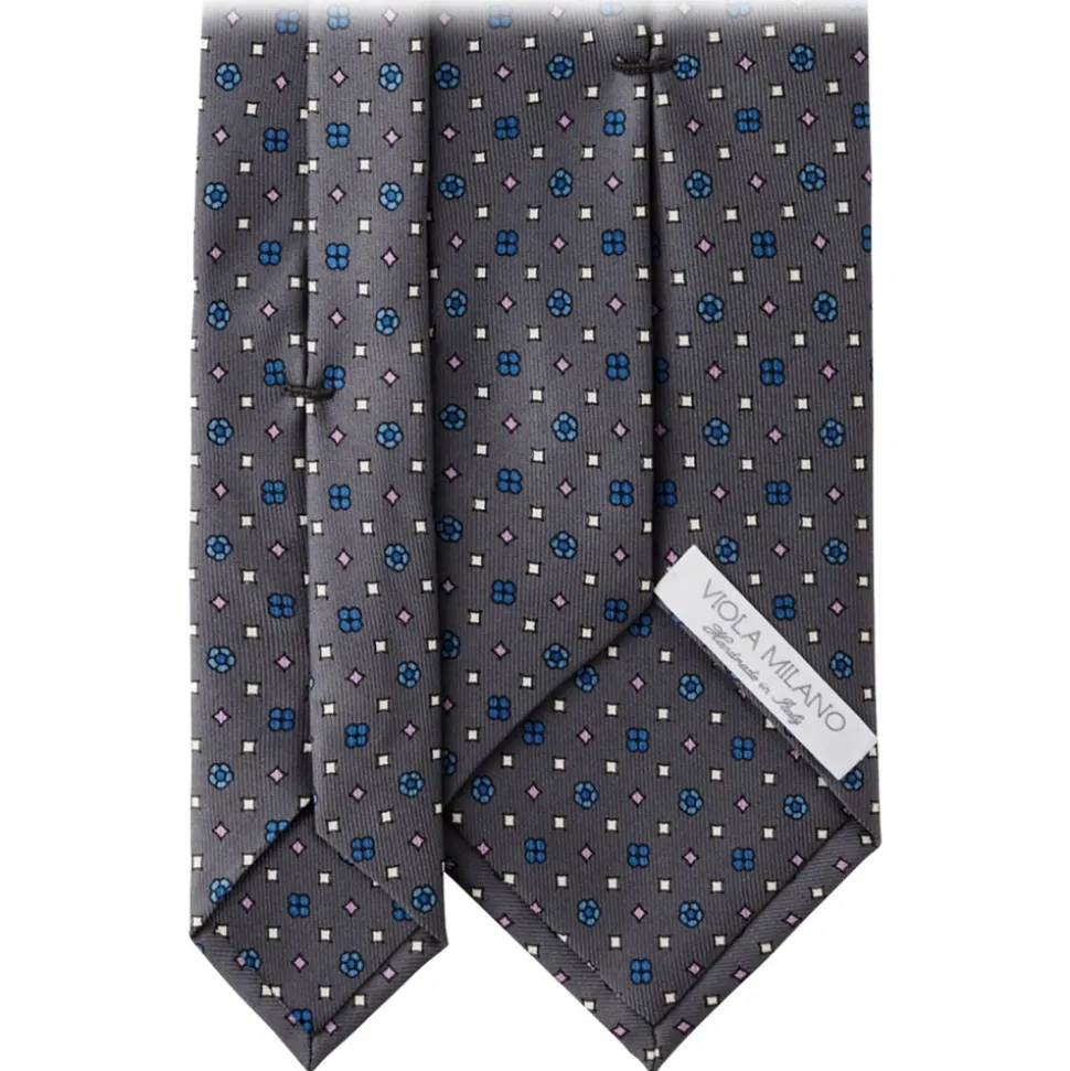Viola Milano – Floral Pattern Handprinted Selftipped Silk Tie – Grey Mix – Handmade in Italy – Luxury Exclusive Collection