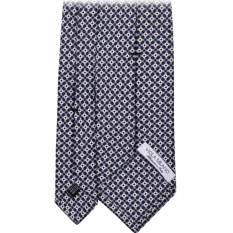 Viola Milano – Floral Pattern Selftipped Silk Tie – Blue Mix – Handmade in Italy – Luxury Exclusive Collection