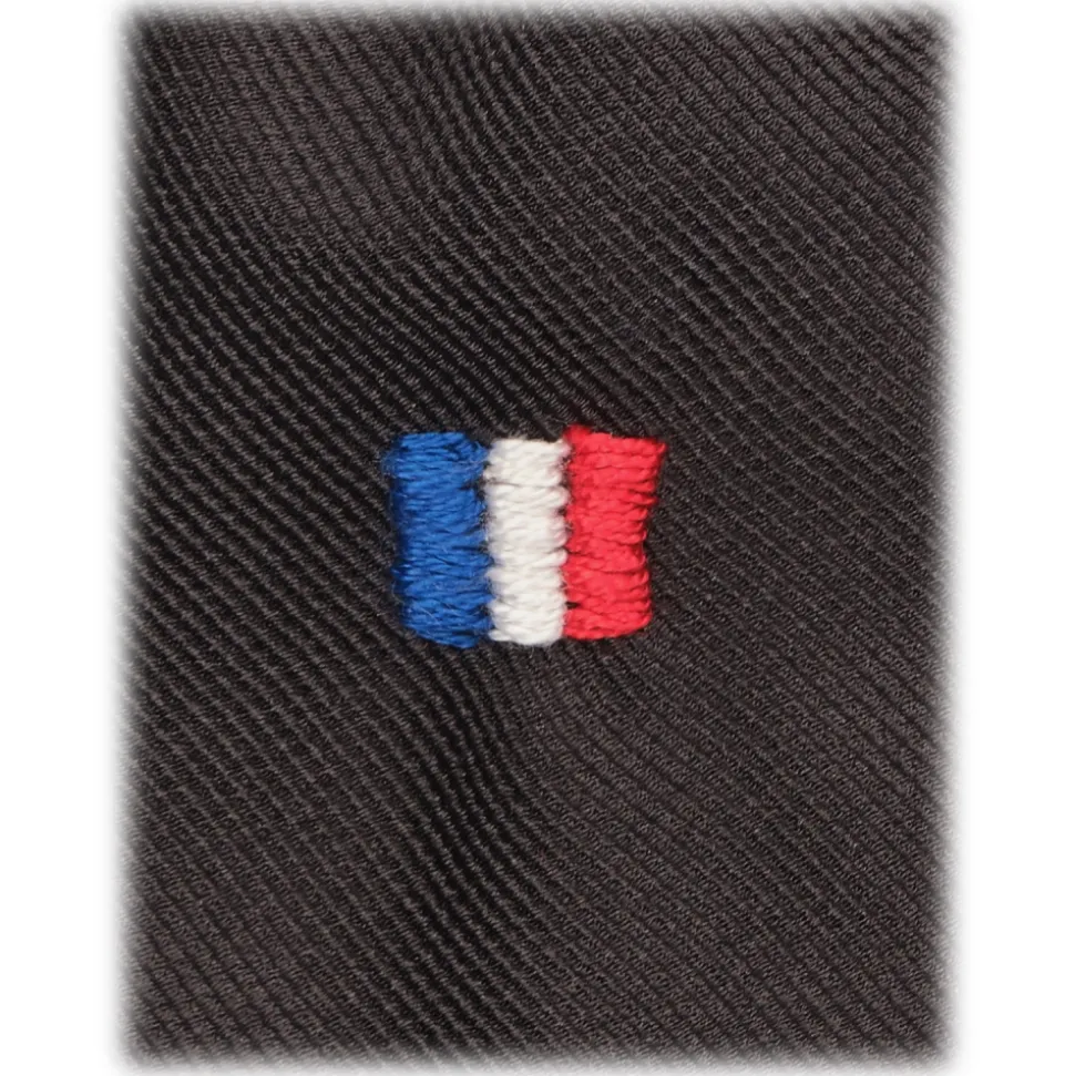 Viola Milano – French Flag Handrolled Woven Silk Jacquard Tie – Navy – Handmade in Italy – Luxury Exclusive Collection