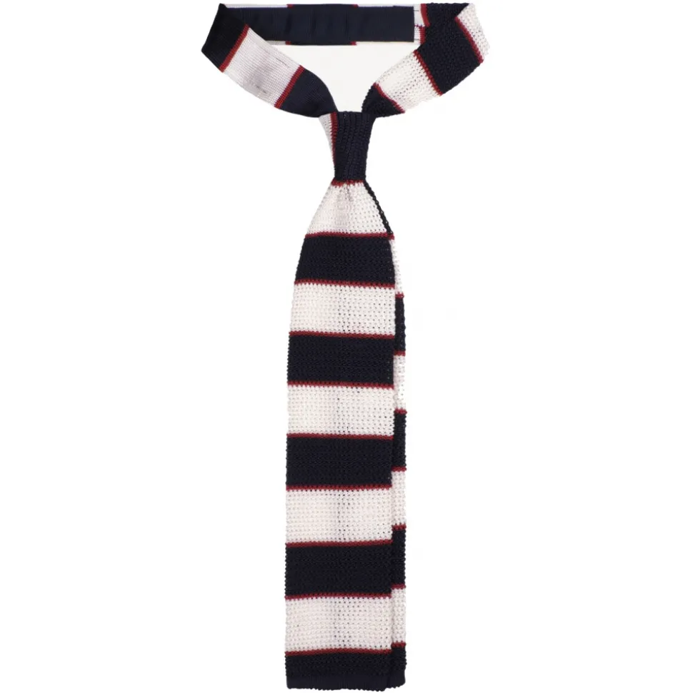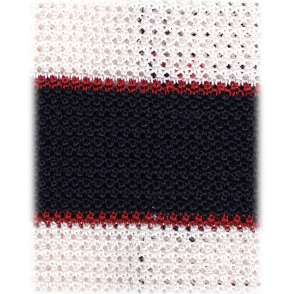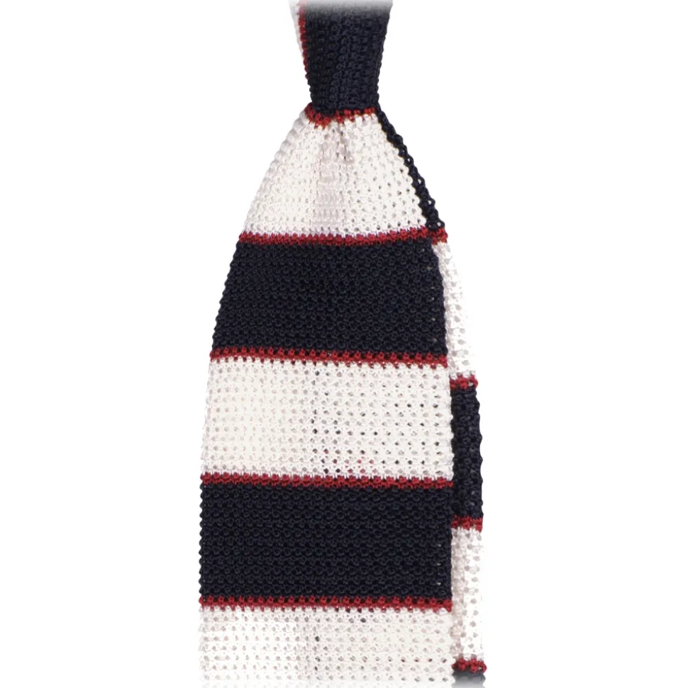 Viola Milano – Knitted Multi Stripe Silk Tie – Navy/White Mix – Handmade in Italy – Luxury Exclusive Collection