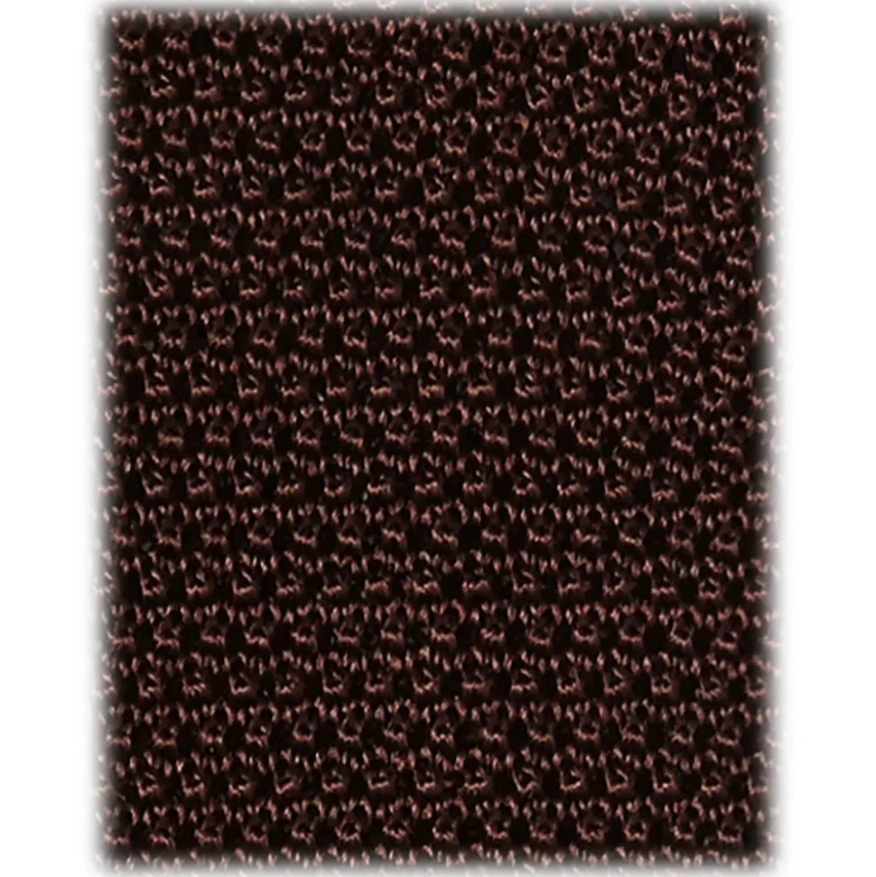 Viola Milano – Knitted Solid V-End Silk Tie – Brown – Handmade in Italy – Luxury Exclusive Collection