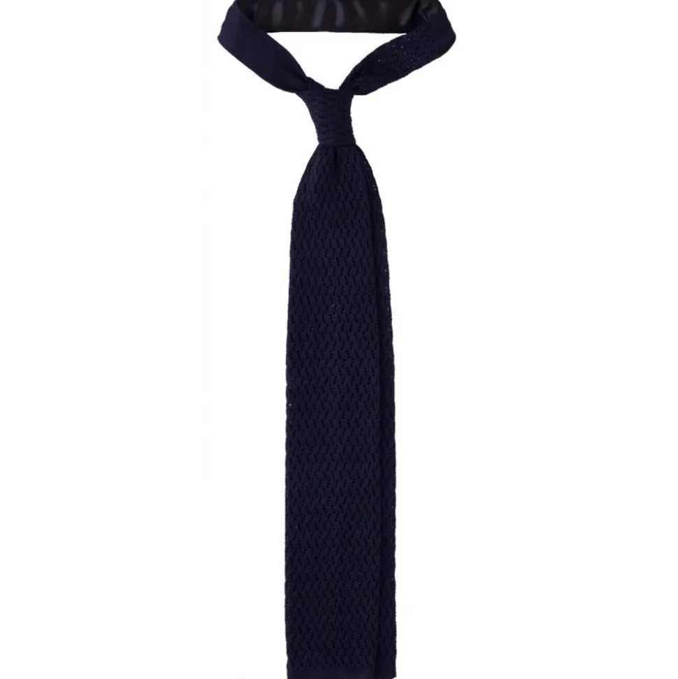 Viola Milano – Knitted Zig Zag Pattern Silk Tie – Navy – Handmade in Italy – Luxury Exclusive Collection