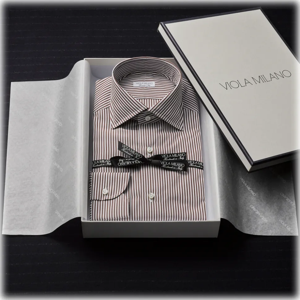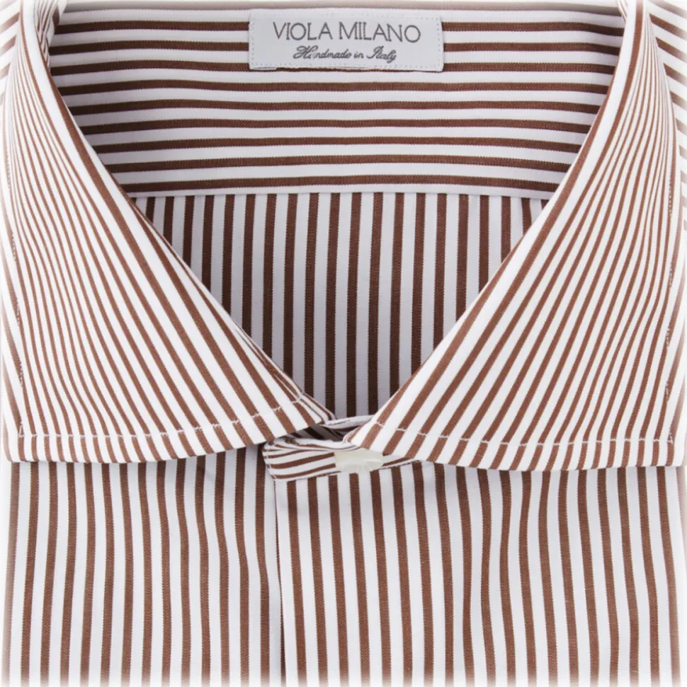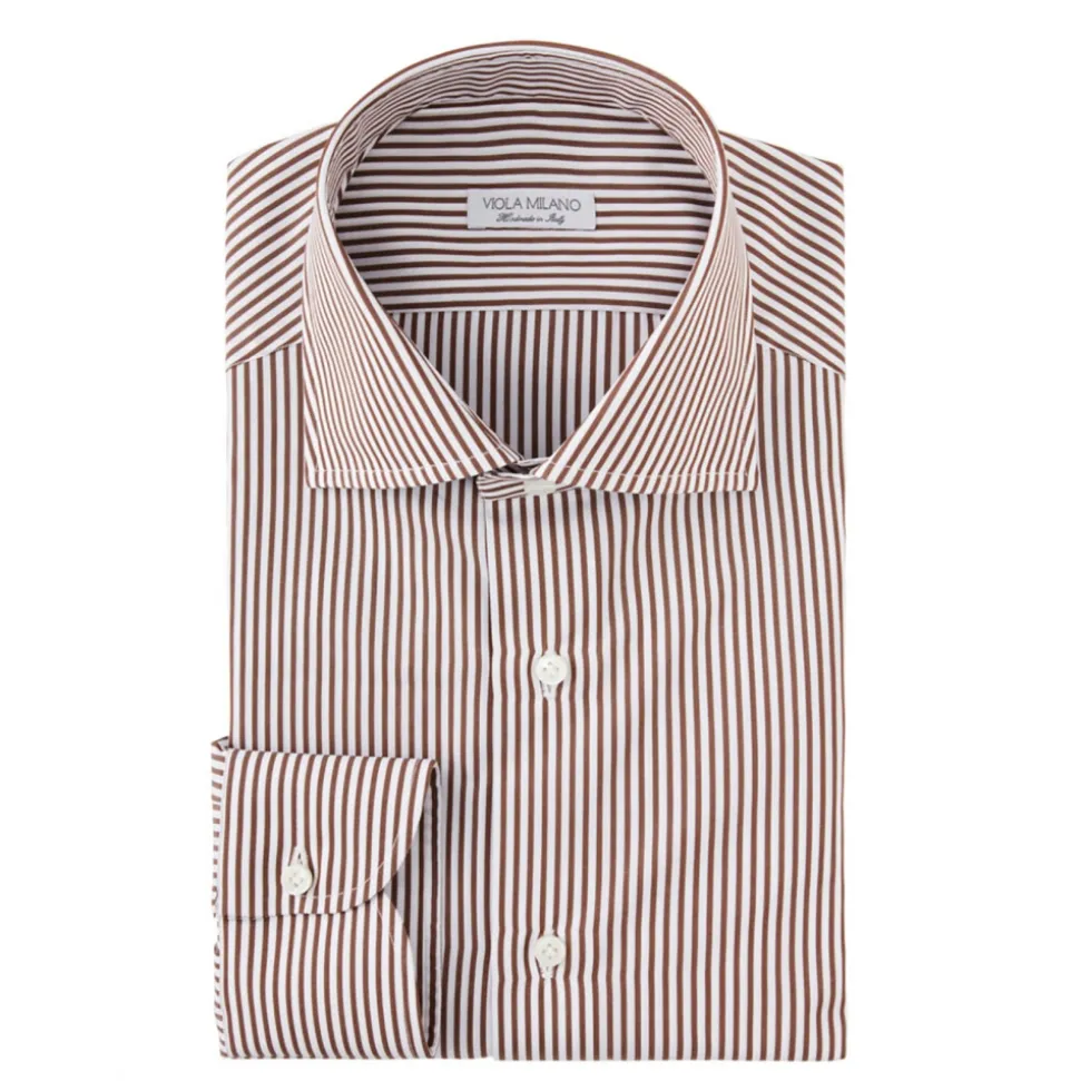 Viola Milano – Long Sleeve Shirt – Brown Stripe – Handmade in Italy – Luxury Exclusive Collection