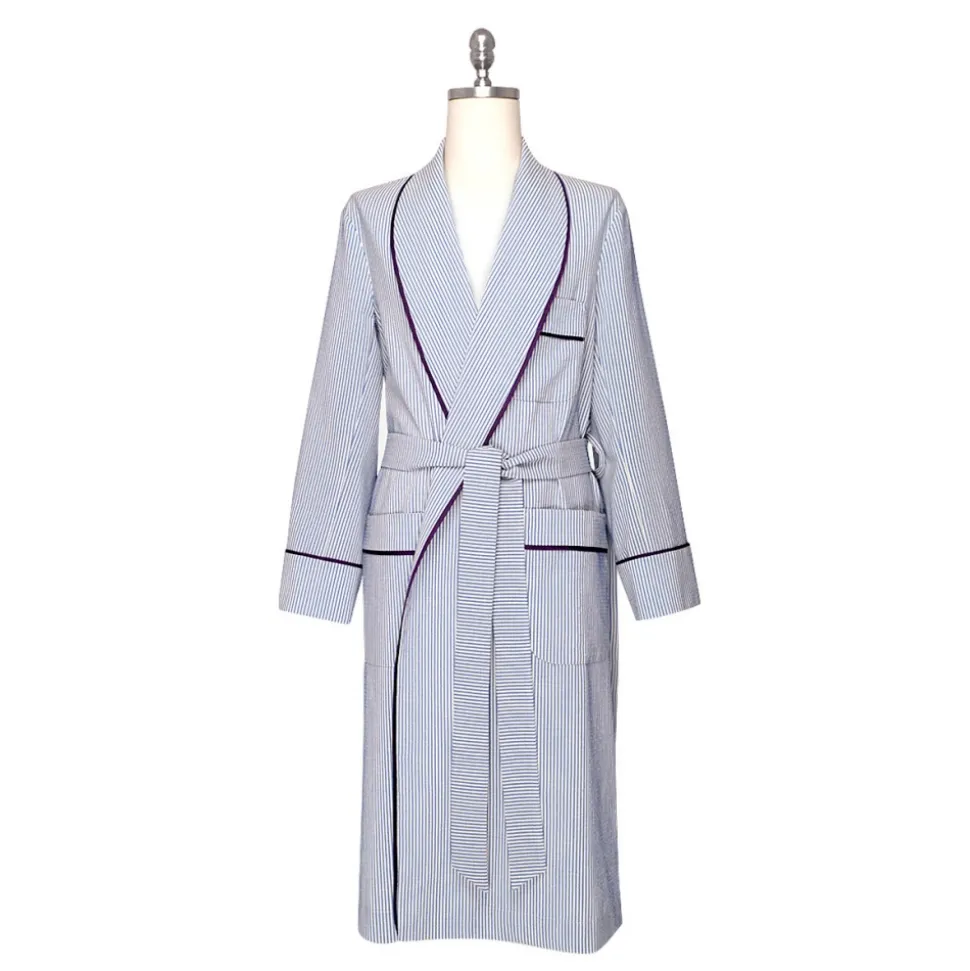 Viola Milano – Loro Piana Seersucker Dressing Gown – Sea and White – Handmade in Italy – Luxury Exclusive Collection