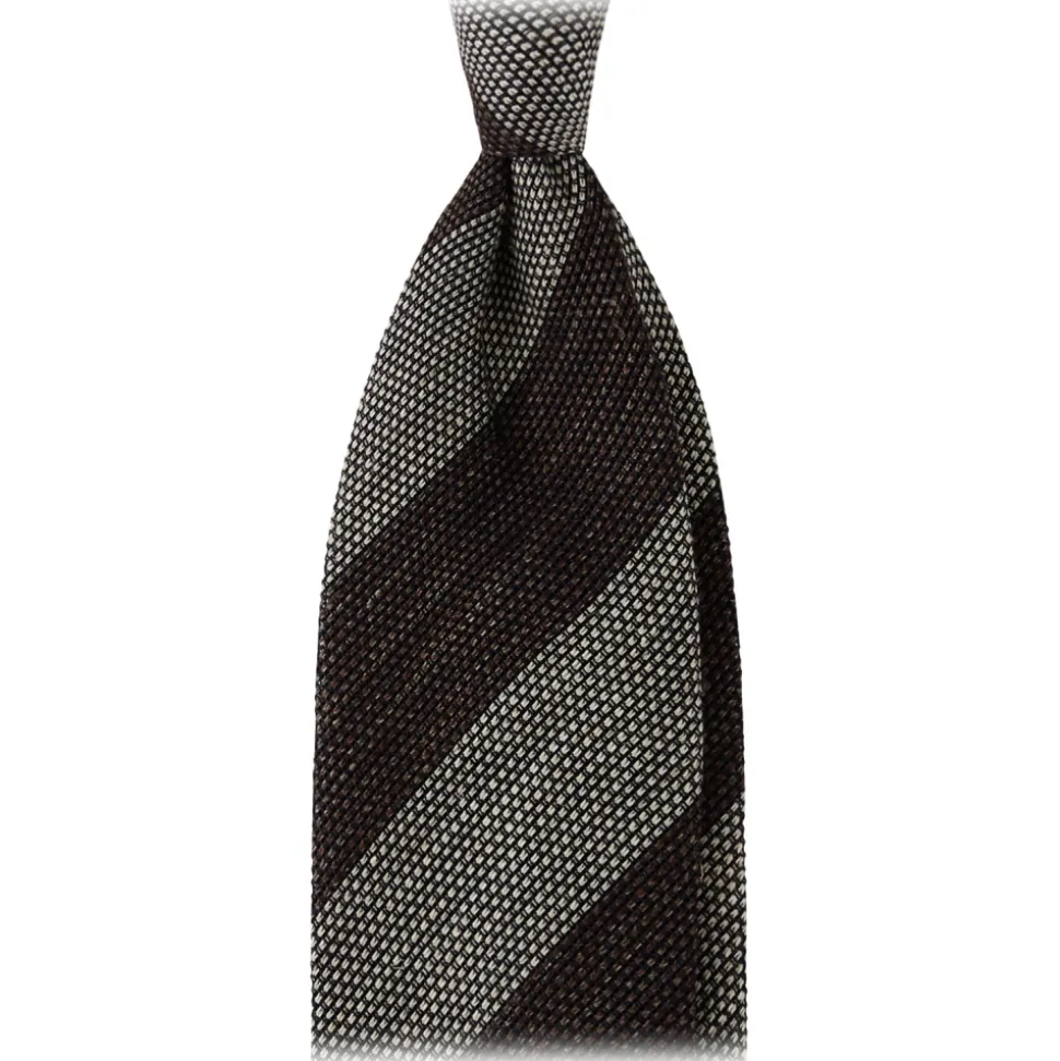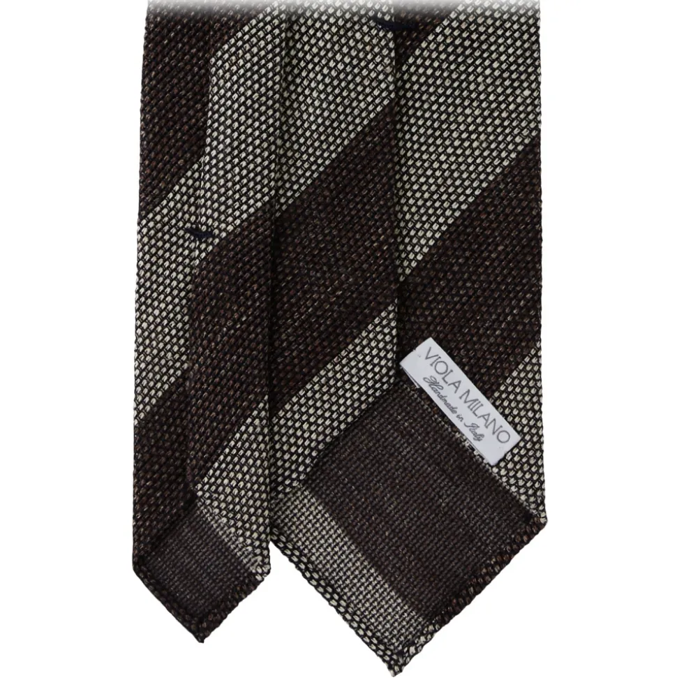 Viola Milano – Melange Stripe 3-fold Grenadine Tie – Brown/Beige – Handmade in Italy – Luxury Exclusive Collection