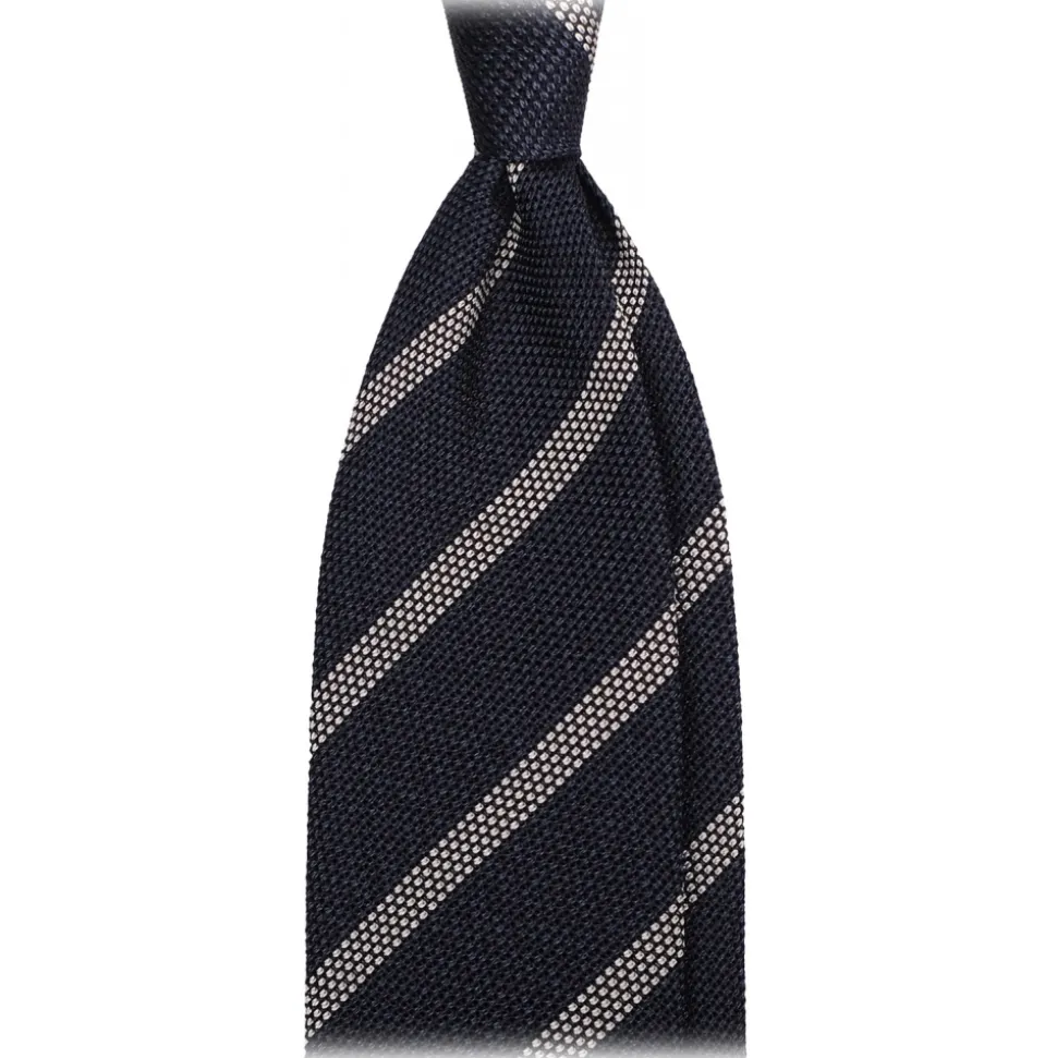 Viola Milano – Melange Stripe 3-fold Grenadine Tie – Navy/White – Handmade in Italy – Luxury Exclusive Collection