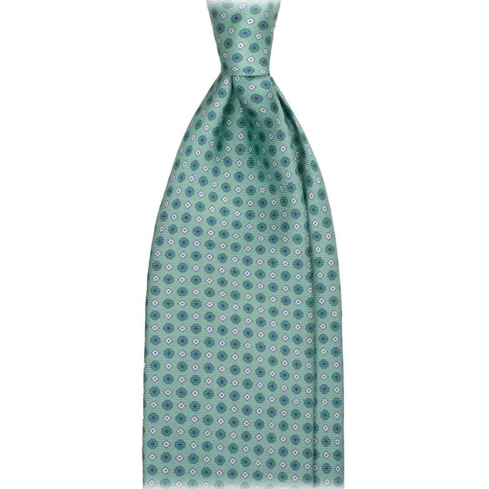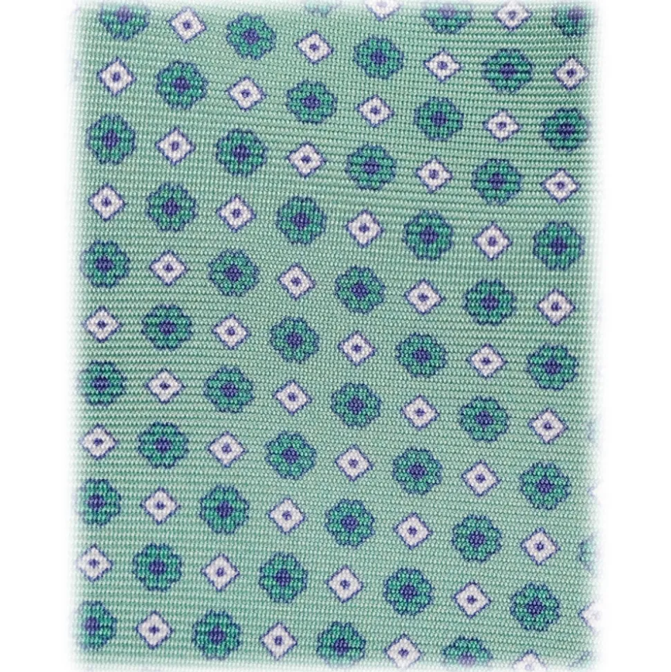 Viola Milano – Micro Floral Selftipped Italian Silk Tie – Menthol – Handmade in Italy – Luxury Exclusive Collection