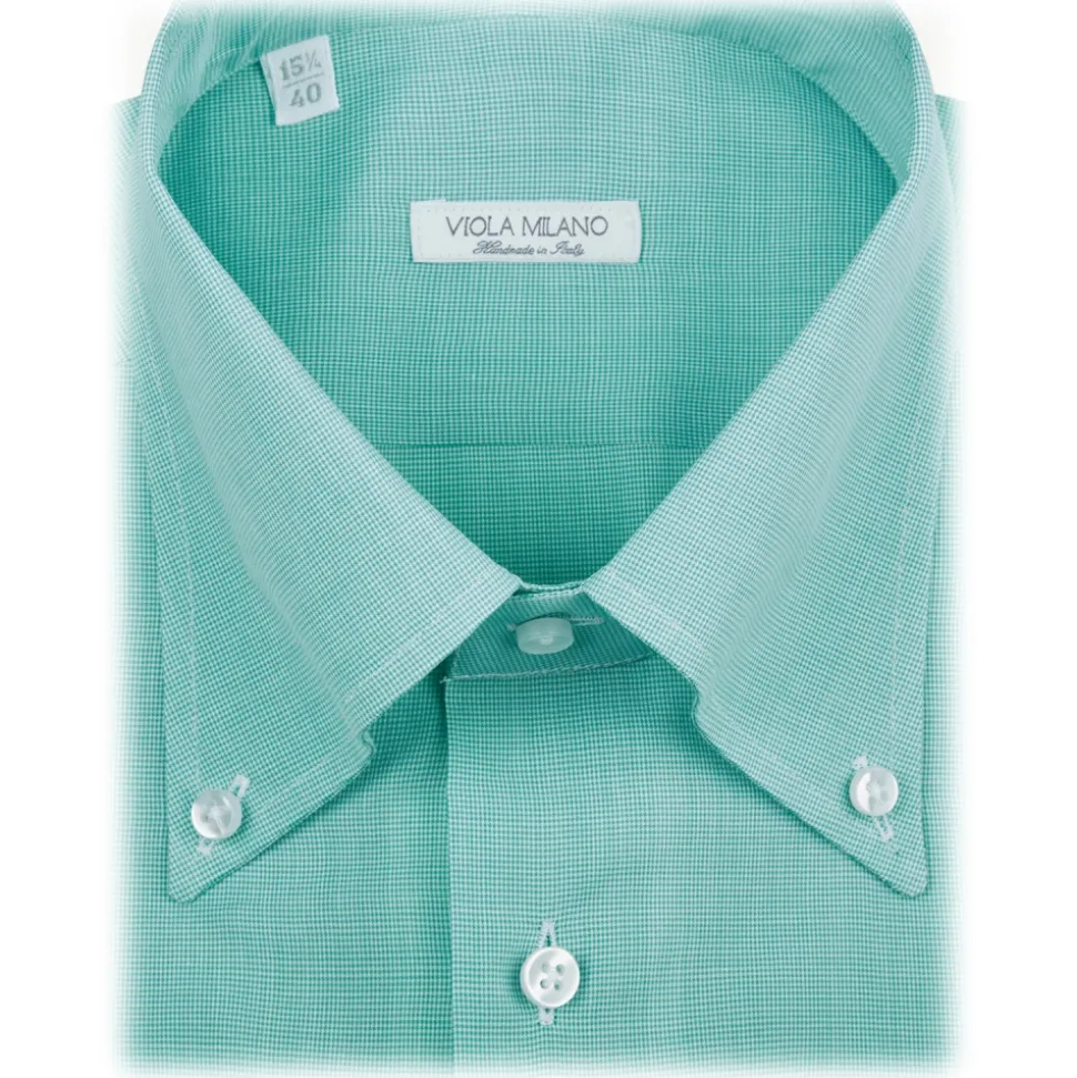 Viola Milano – Micro Pattern Carlo Riva Voila Tela Button-Down Shirt – Menthol – Handmade in Italy – Luxury Exclusive Collection
