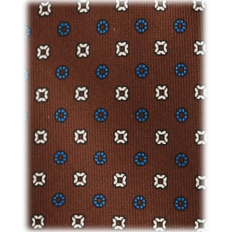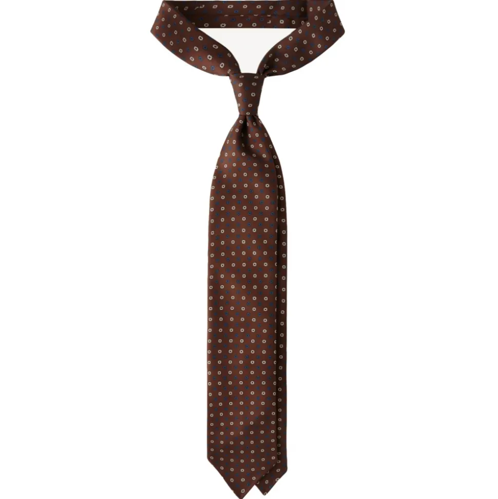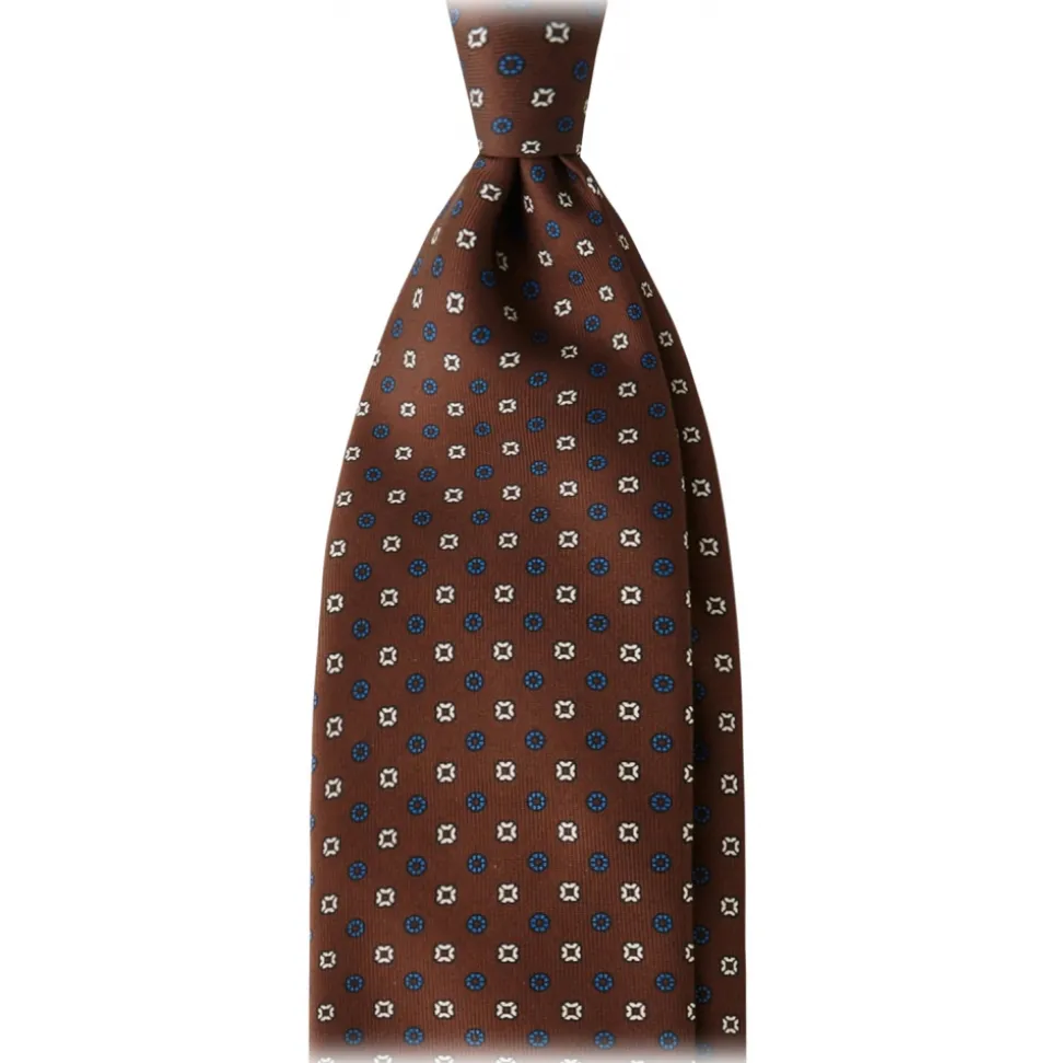 Viola Milano – Mixed Floral 3-Fold Handprinted Selftipped Silk Tie – Brown – Handmade in Italy – Luxury Exclusive Collection