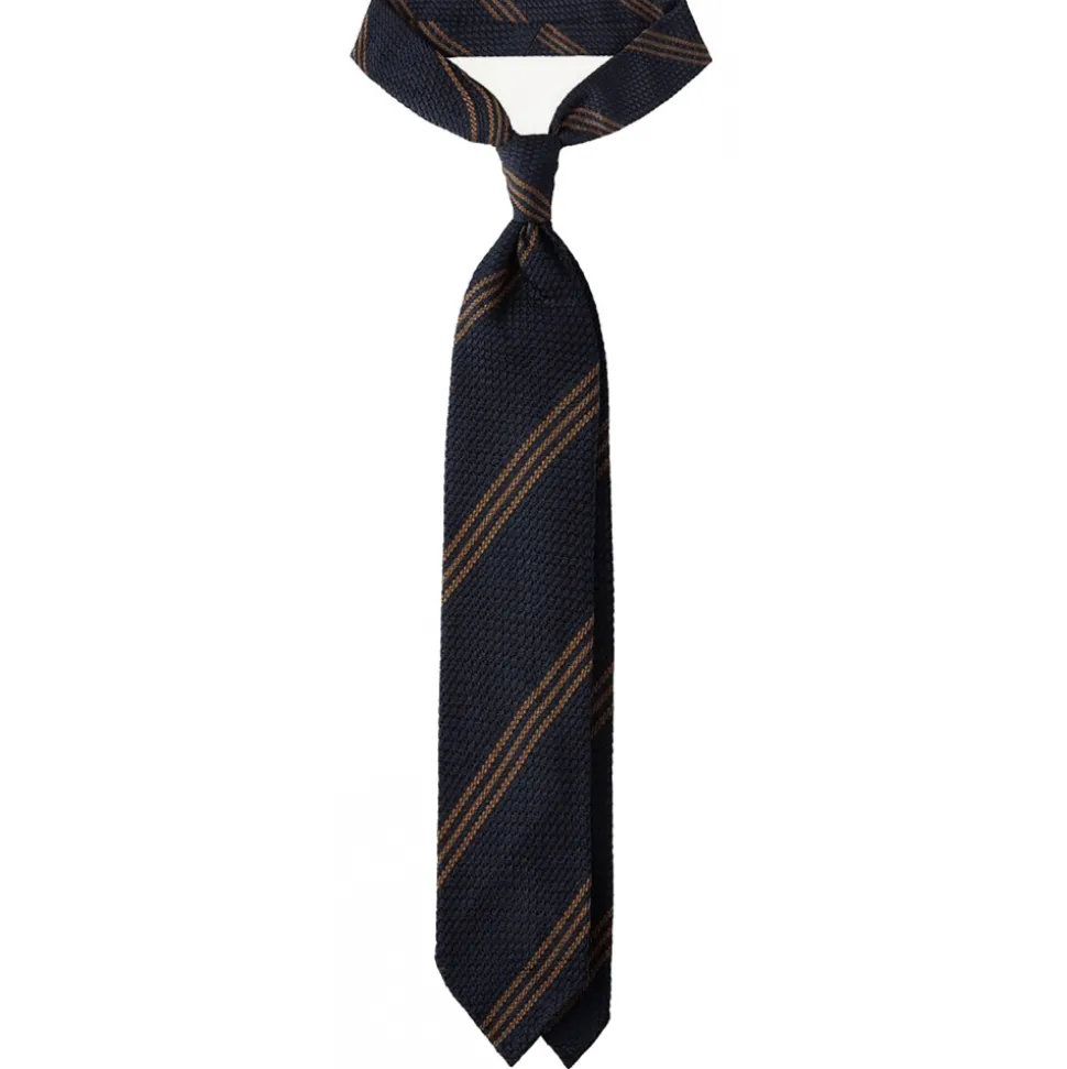 Viola Milano – Multi Stripe 3-Fold Grenadine Tie – Navy/Brown – Handmade in Italy – Luxury Exclusive Collection