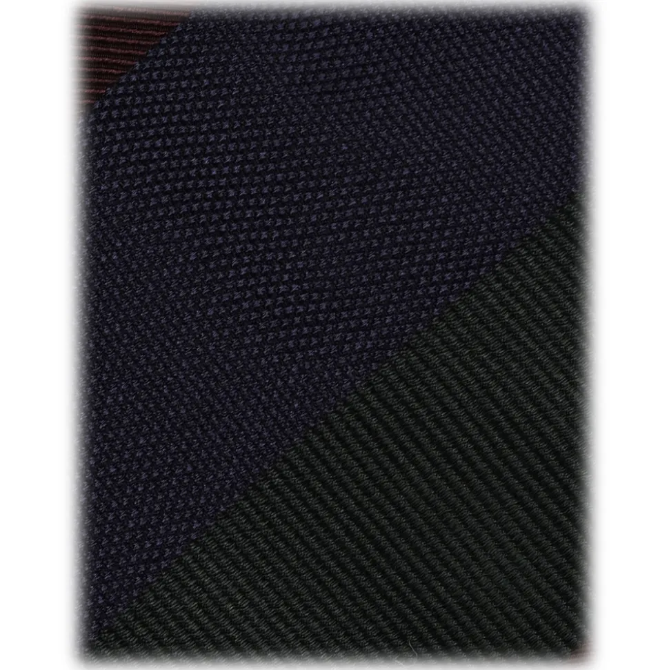 Viola Milano – Multi Stripe Handrolled Woven Silk Tie – Navy/Green Mix – Handmade in Italy – Luxury Exclusive Collection