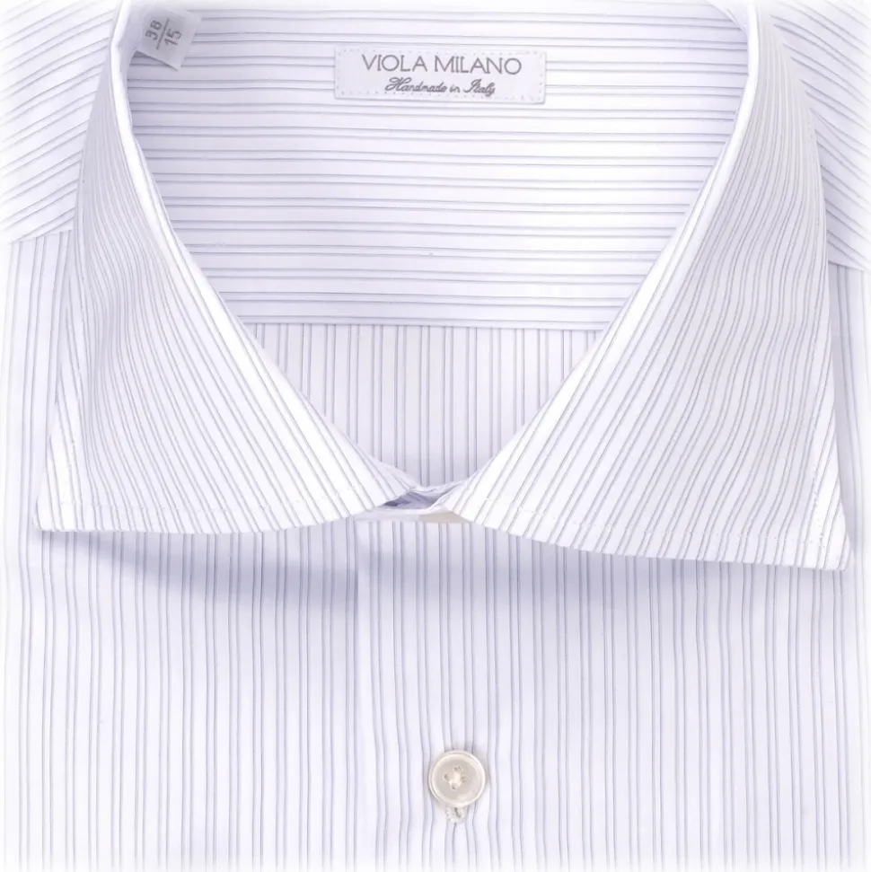 Handmade classic dress shirt with an essential cut-away spread collar. Made by hand in our own small workshop in Southern Italy.